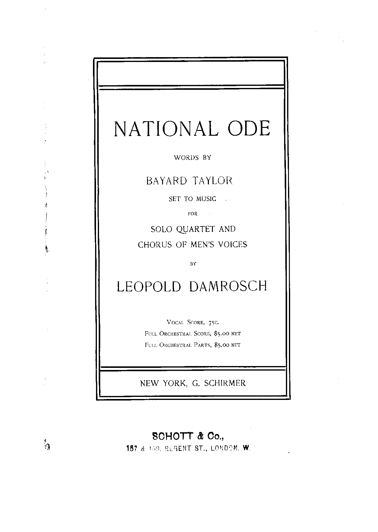 | Genre Categories | Odes; For 4 voices, male chorus, orchestra; For voices and chorus with orchestra; |