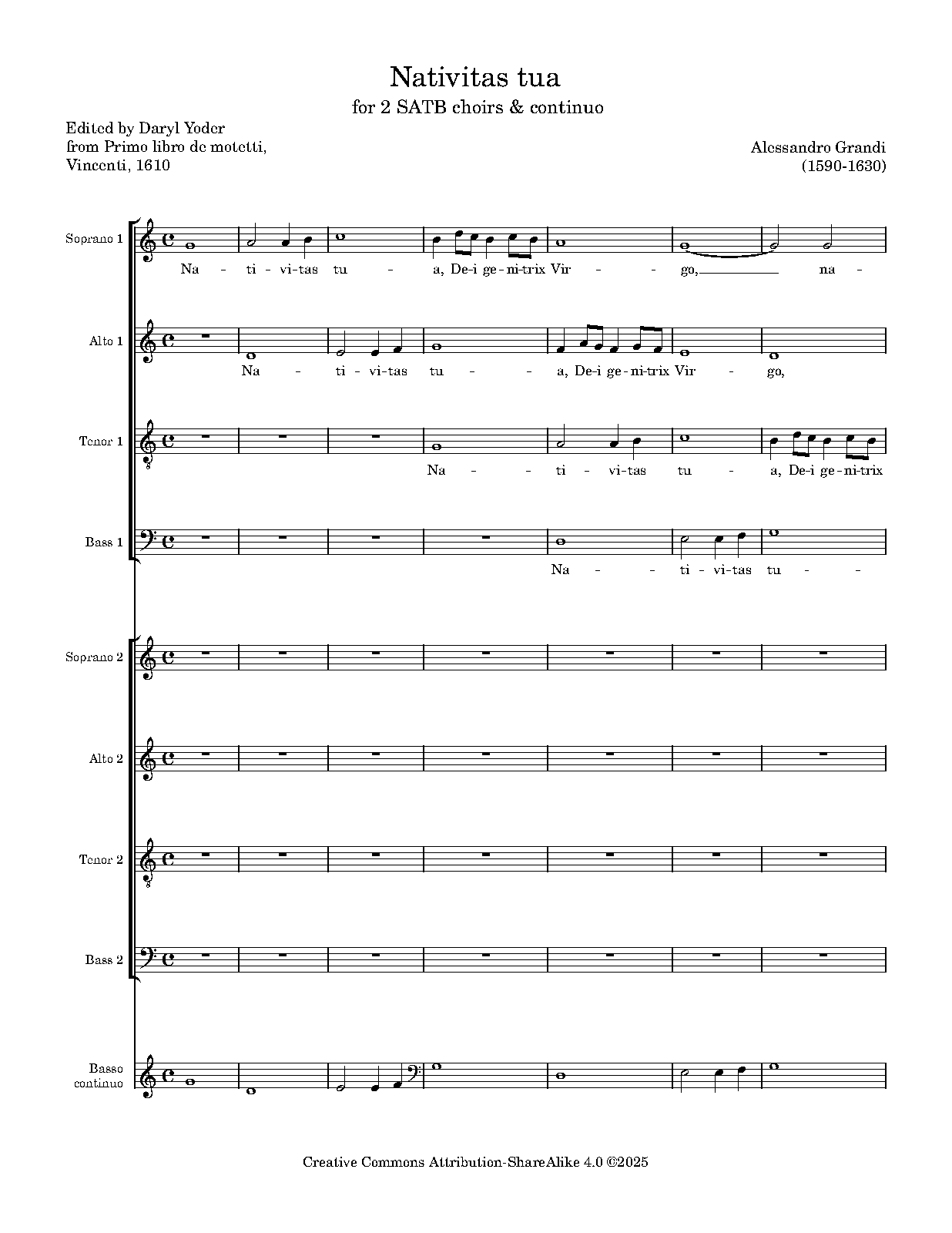 | Instrumentation | 2 mixed choruses (SATB/SATB), continuo |