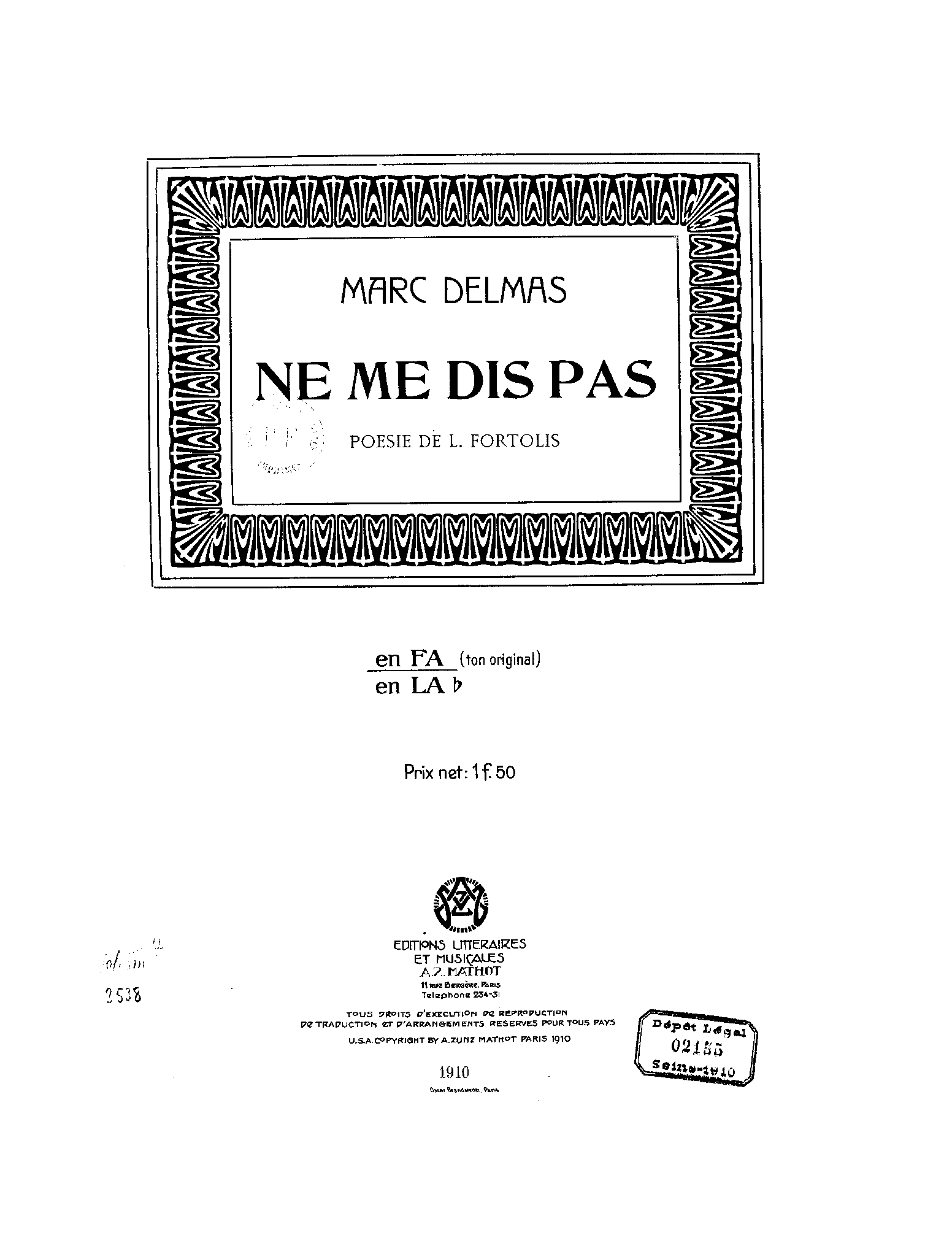 | Copyright Information | Publication noted in the Bibliographie de la France : 99e année, 2e série, Nº 23, 10 Juin 1910, p.387, reg.2370. |