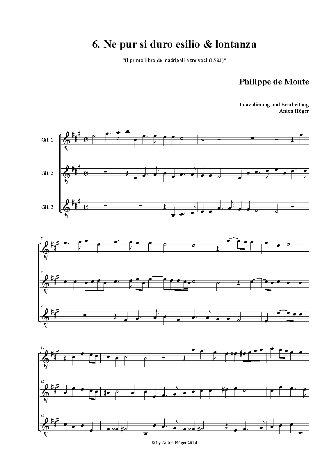 | First Publication | 1582 in Madrigali a 3 voci, Libro 1 (No.6) |
