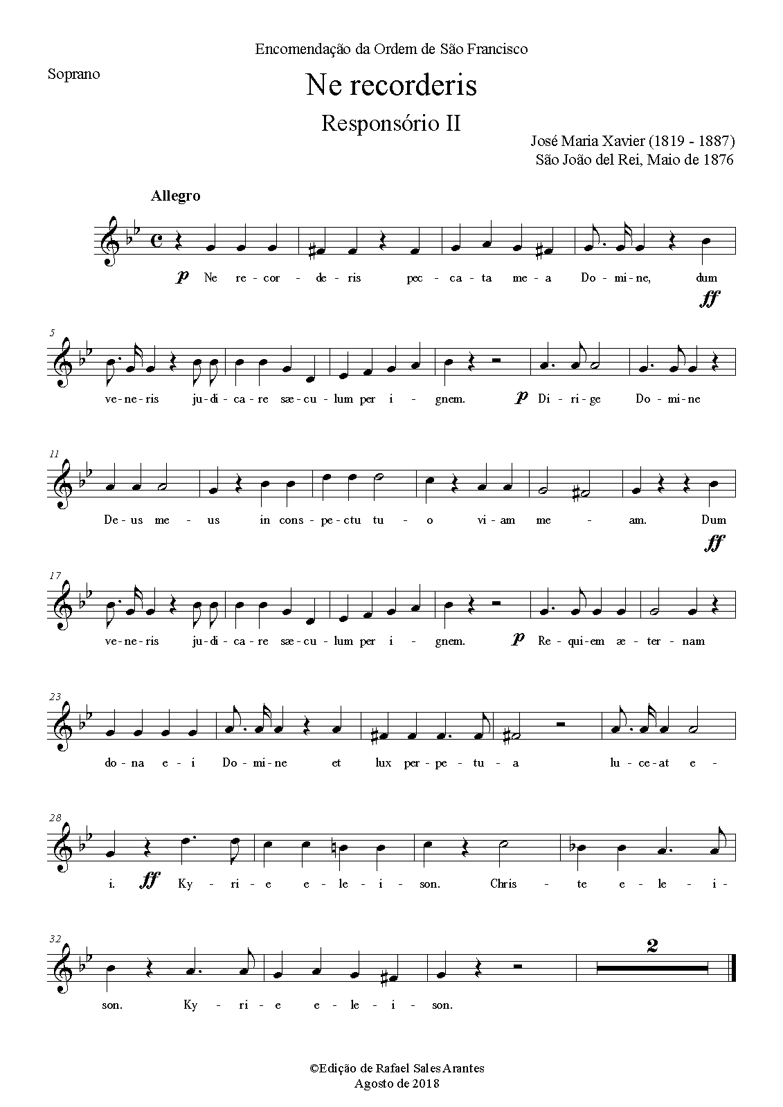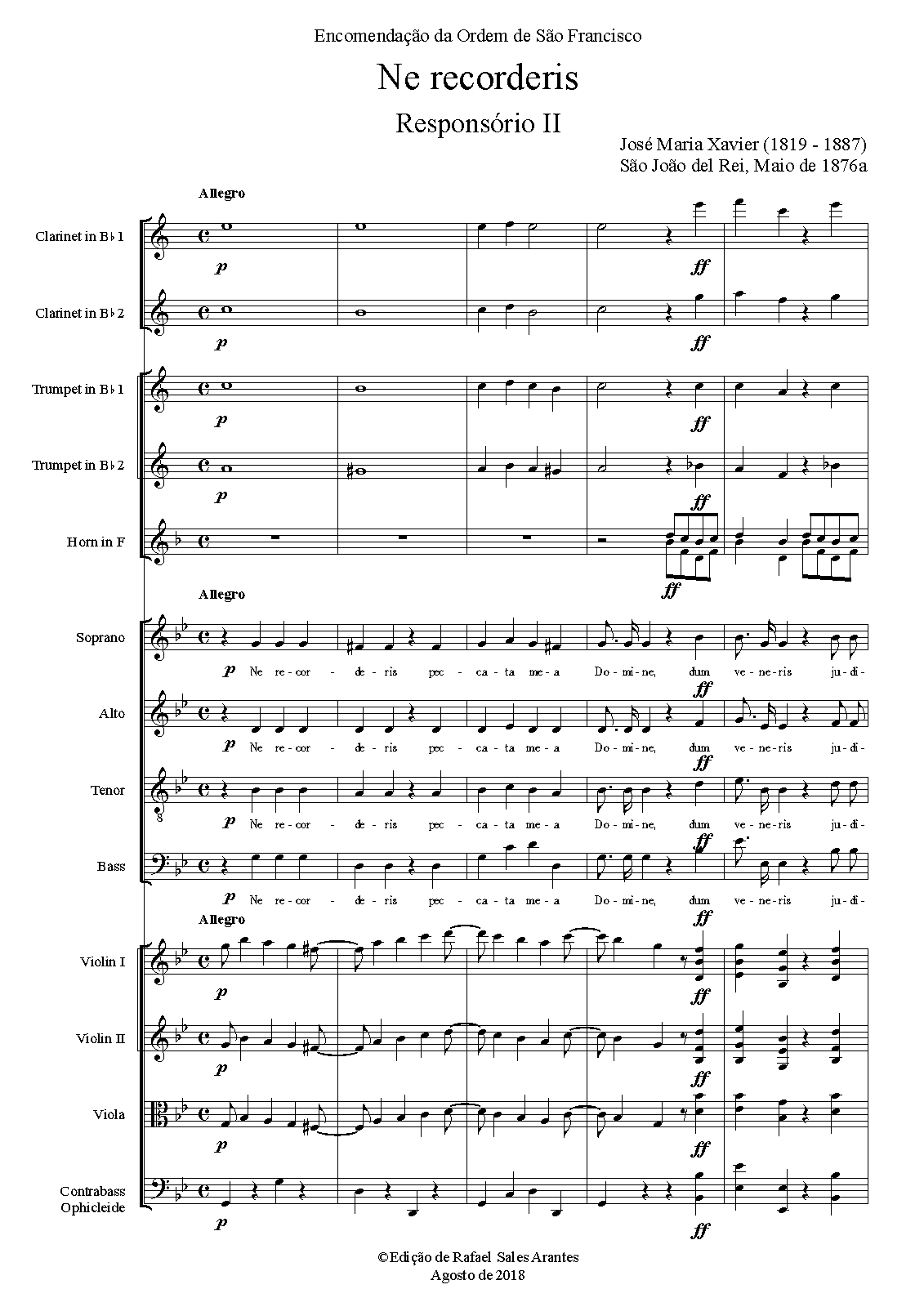 | Instrumentation | Voices: mixed chorus (SATB) Orchestra: 2 clarinets (B♭), 2 horns (F), 2 trumpets (B♭), ophicleide, strings |