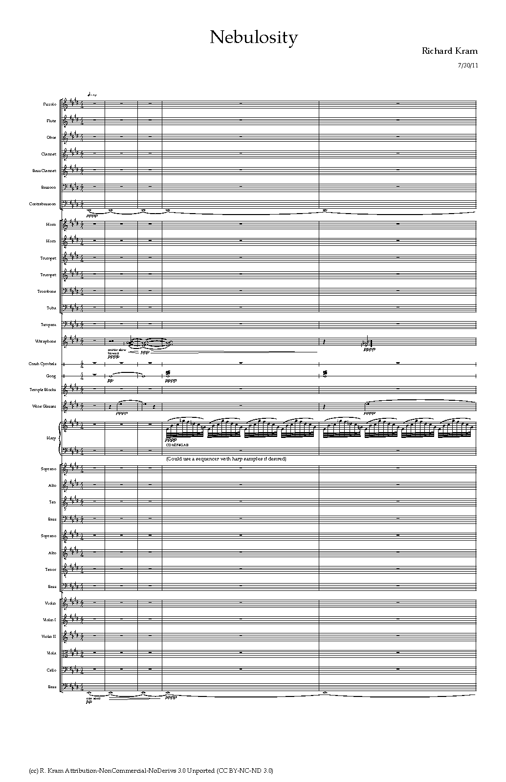 Written for a collage video of Galaxy images from the Hubble Space Telescope. A large piece that was intended as a synthesized performance, but it is fully written out for orchestra and double chorus. Alternates between dissonant and much more consonant sections. Nice to just let the sounds just evolve sometimes instead of "methodically composing".