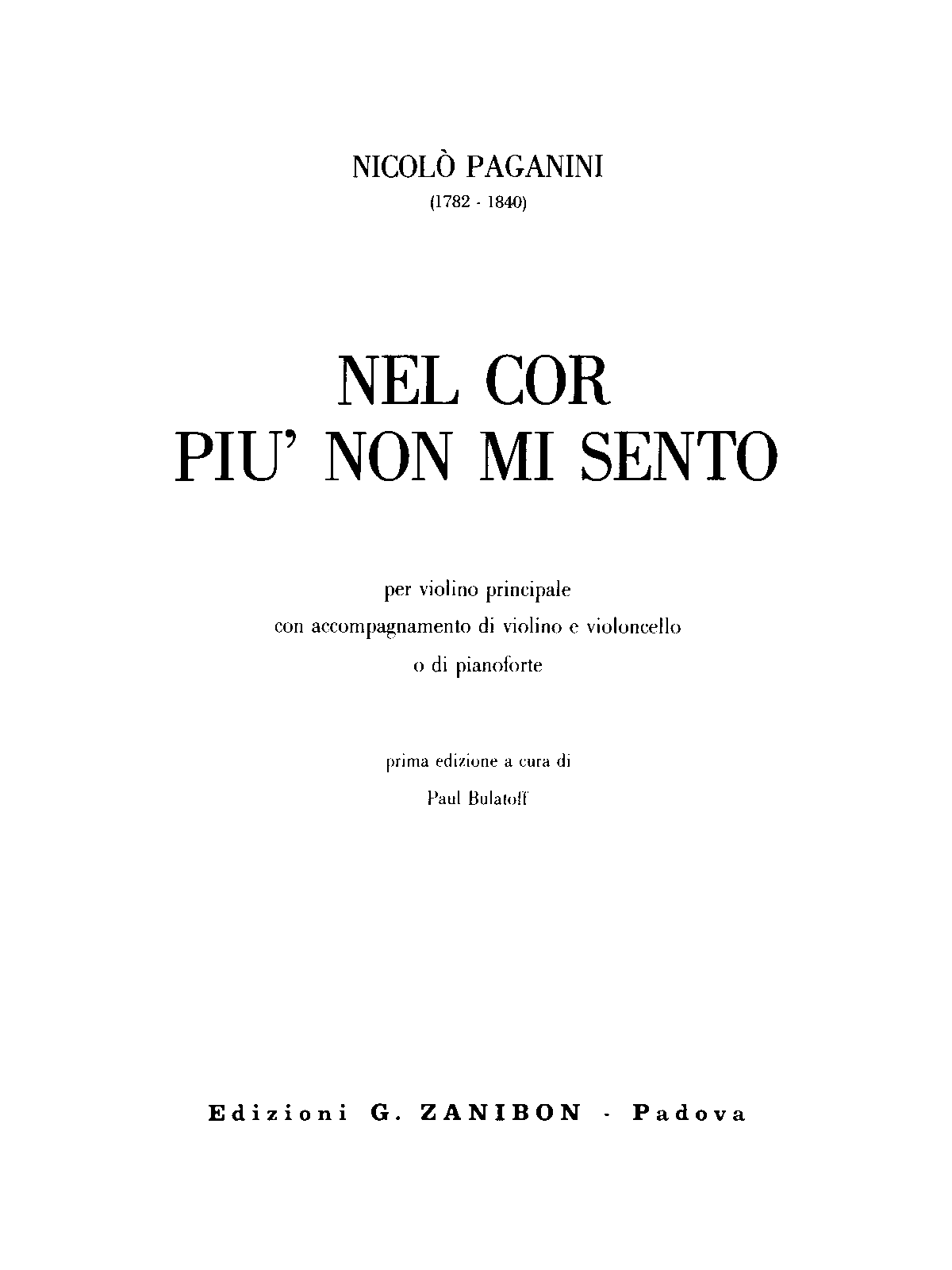 Not to be confused with the Variations on Nel cor più non mi sento, MS 44. In the original manuscript, the piece is entitled In Cuor più non mi Sento.