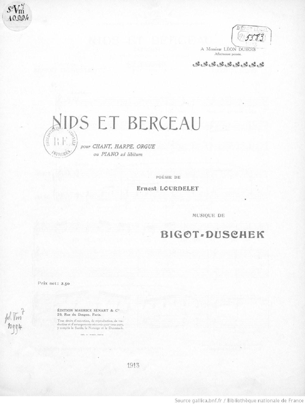 | Alternative. Title | Nids et berceau, pour chant, harpe, orgue ou piano ad libitum |
