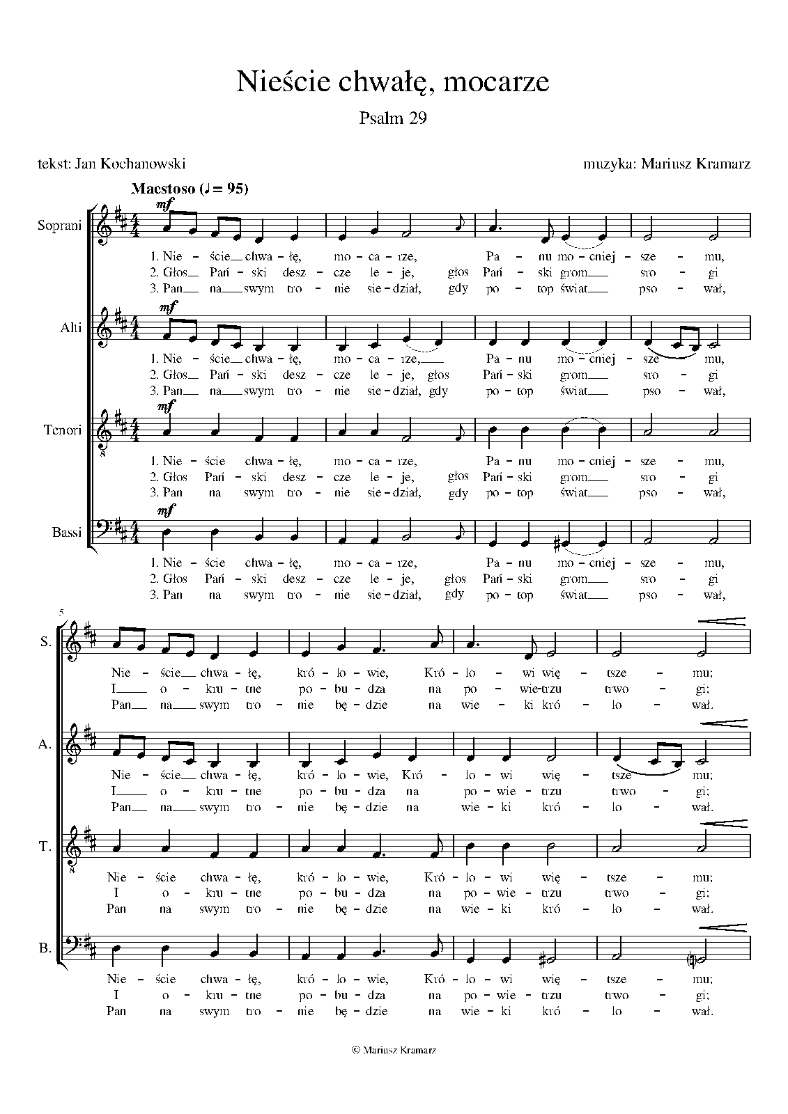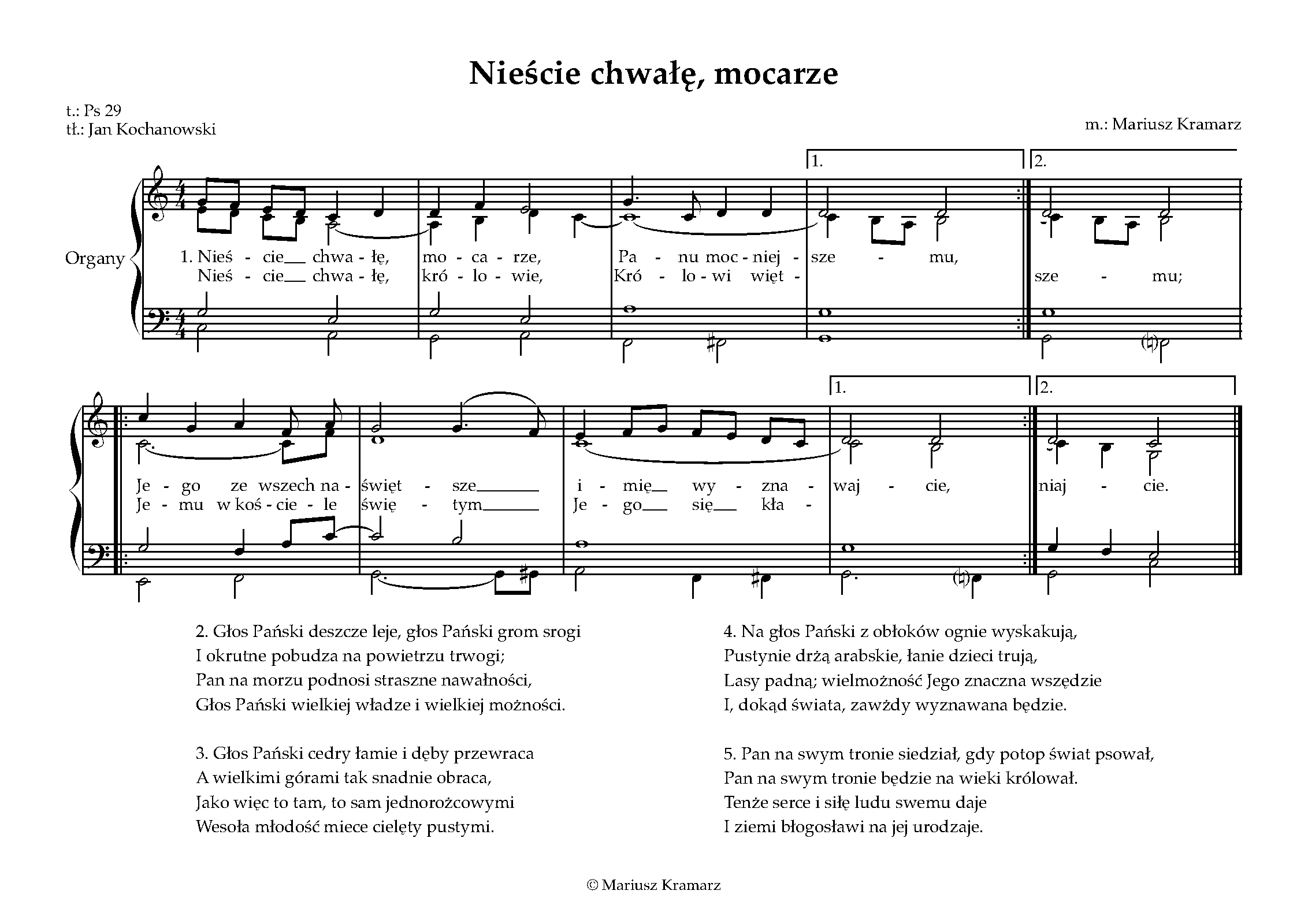 | Librettist | Psalm XXIX, versified by Jan Kochanowski (1530–1584) |