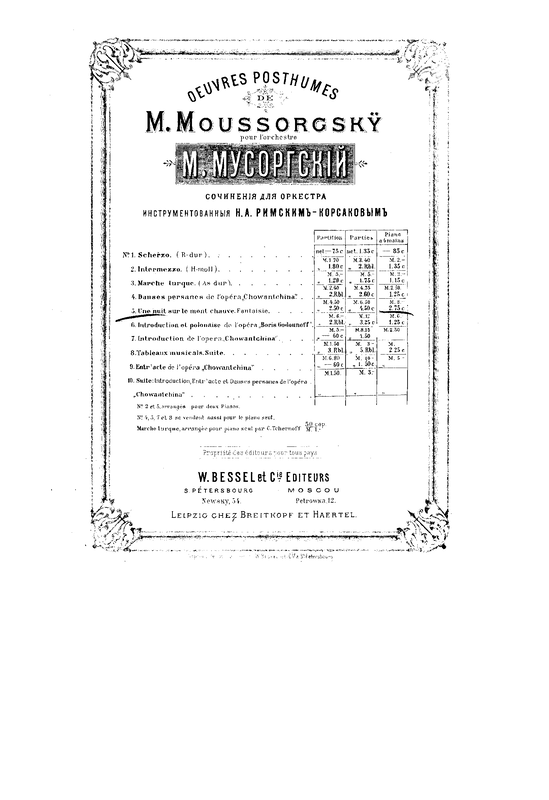 First Publication. 1886 - St. Petersburg: Bessel (Rimsky-Korsakov version)