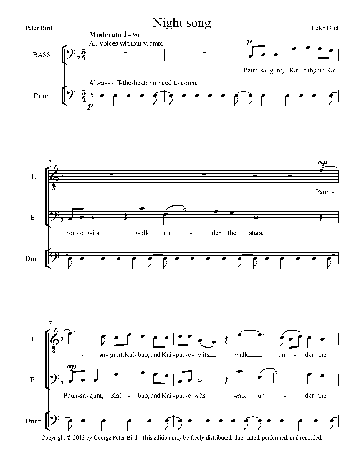 | Genre Categories | Songs; For mixed chorus, percussion; Scores featuring mixed chorus; |