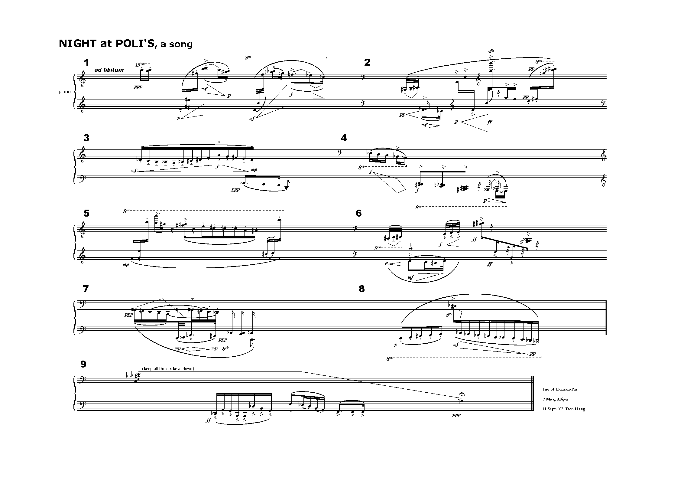 | Alternative. Title | Night at Poli's, a song for piano |