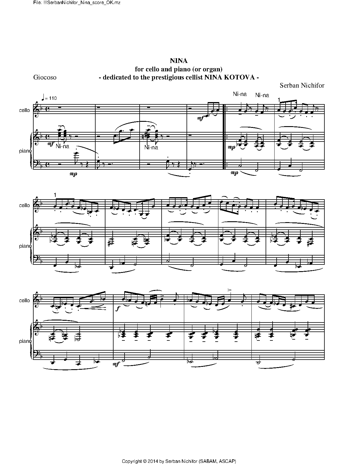 | Dedication | Homage to the prestigious cellist Nina Kotova |