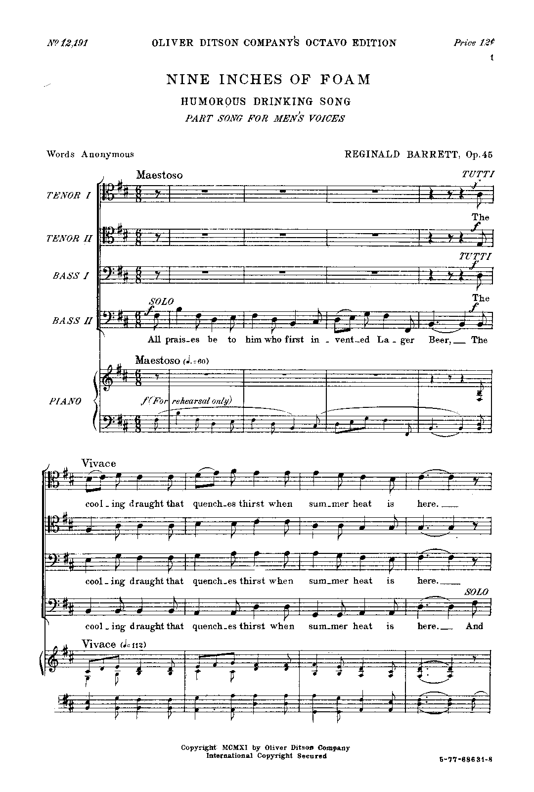 | Genre Categories | Songs; For male chorus, piano; Scores featuring male chorus; |
