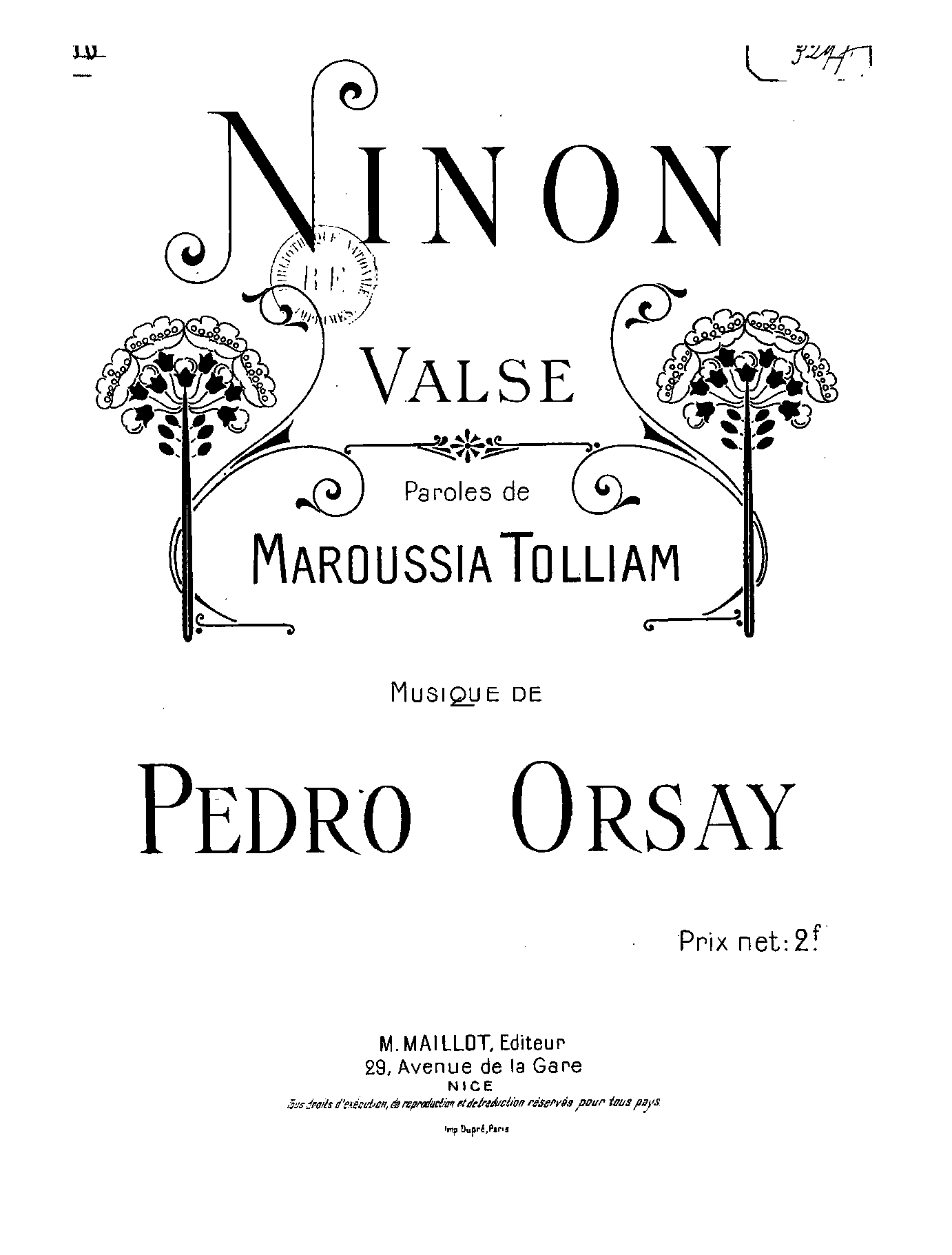| Librettist | Maroussia Tolliam (likely a pseudonym of publisher M. Maillot) |