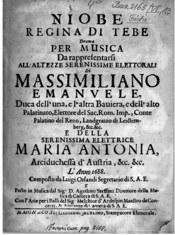 Voices: 9 voices, mixed chorus (SATB) Orchestra: 2 flutes (recorders), 4 trumpets, timpani, strings, continuo