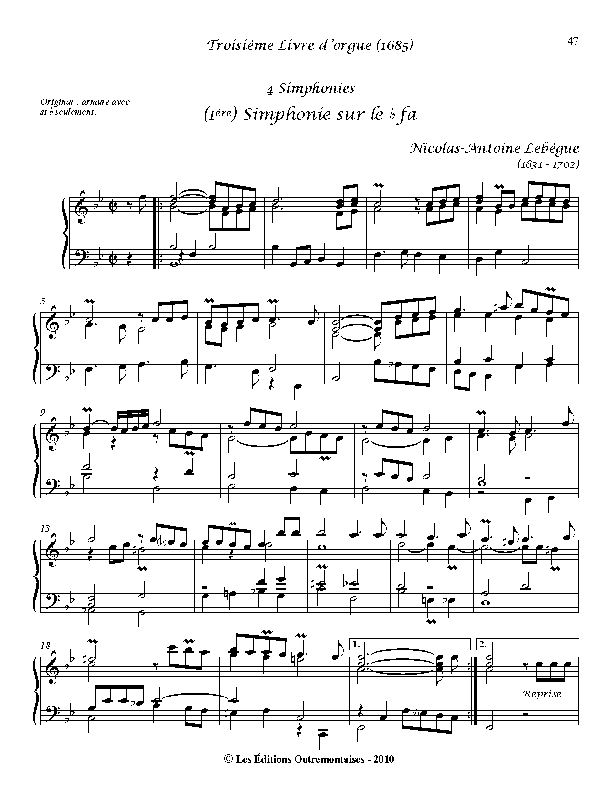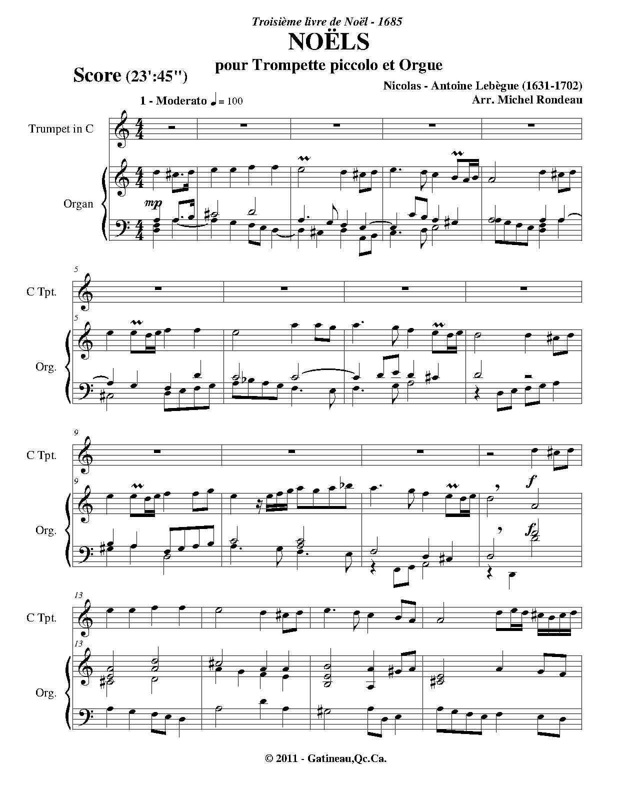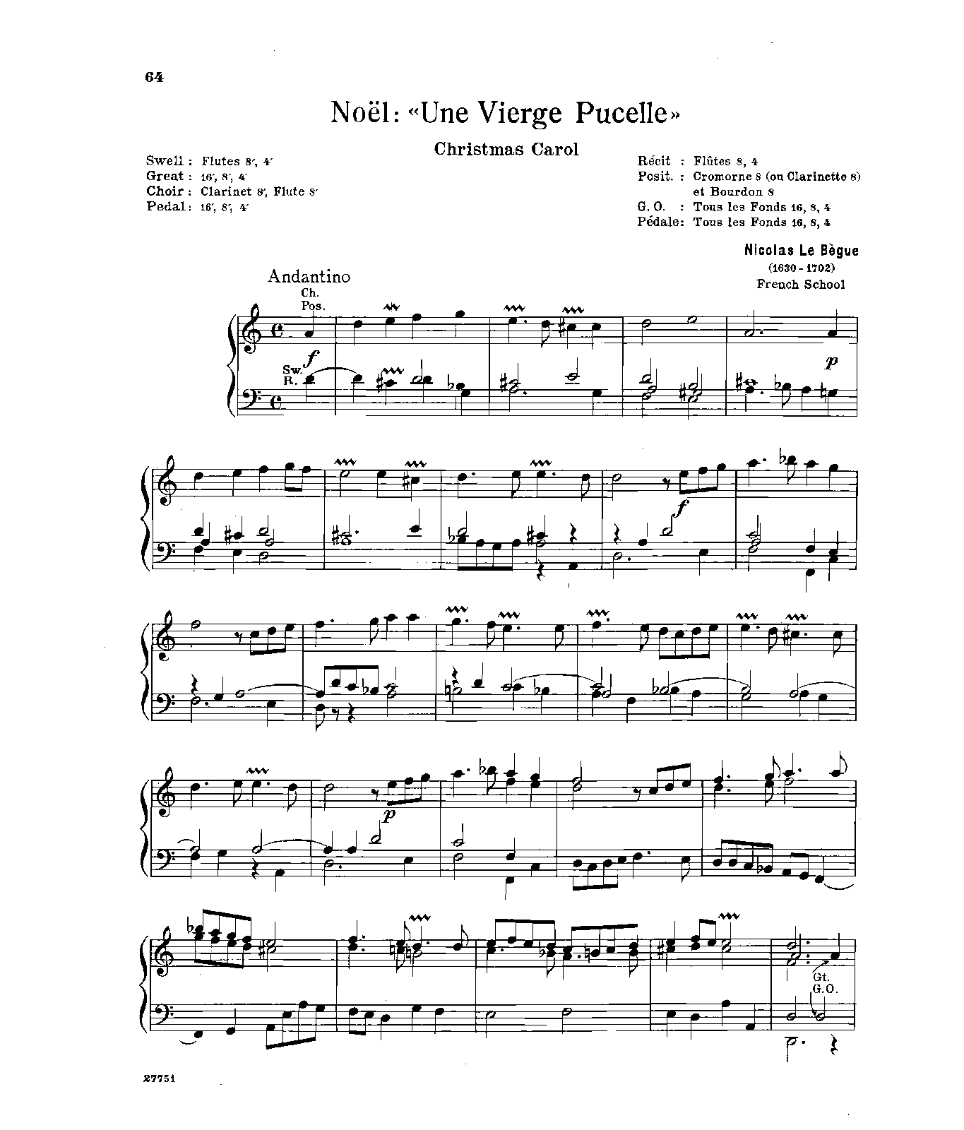 Misc. Notes Addendum. These noëls (ms. Vm7. 1823 in BnF) were attributed to LeBègue, or his pupils, by Alexandre Guilmant, in Archives des Maîtres de l’Orgue, Œuvres Complètes de Nicolas LeBègue, vol. IV (1909).