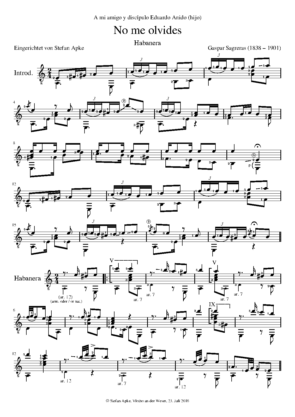 | Genre Categories | Habaneras; Dances; For guitar; |