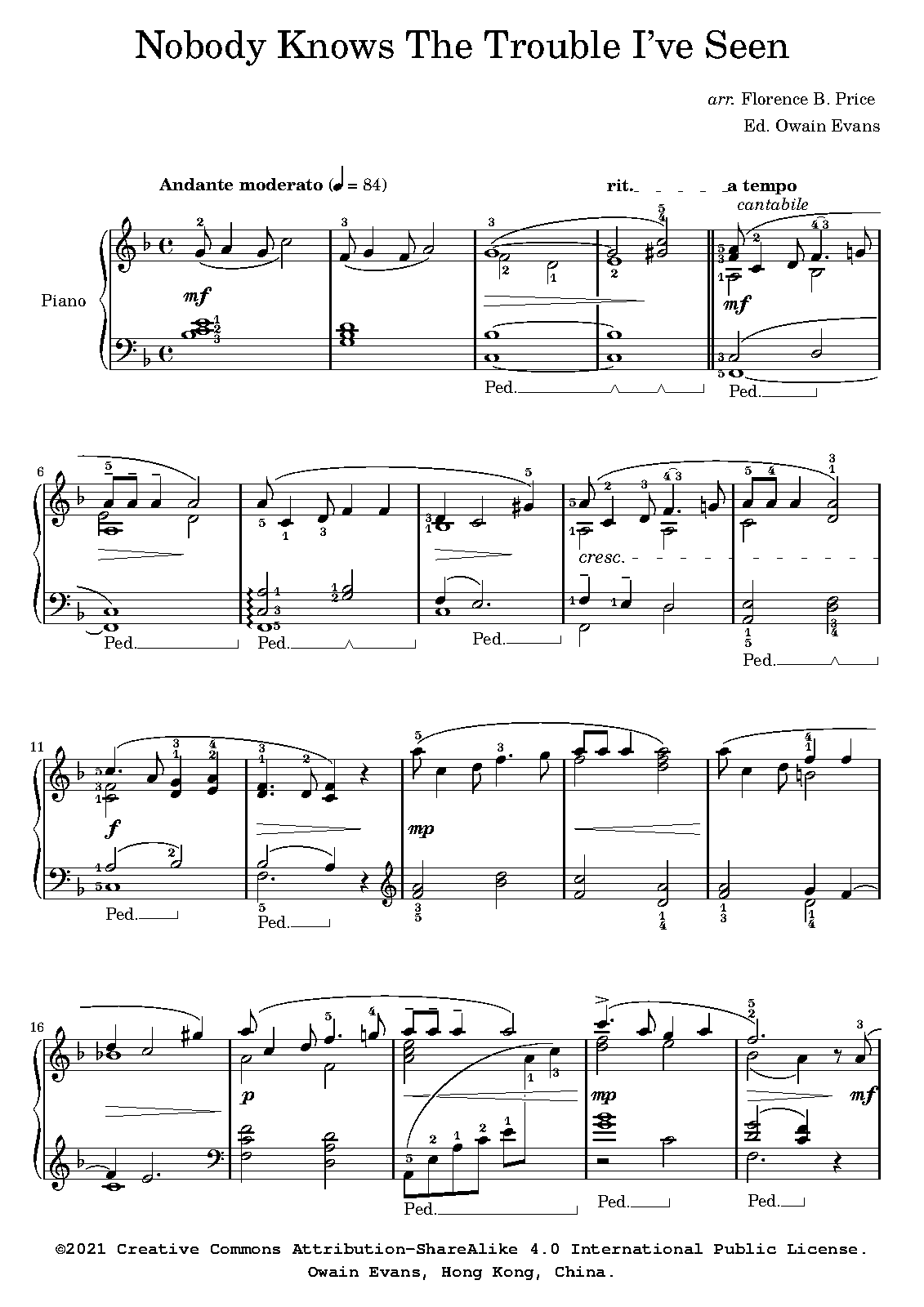 | Work Title | Nobody Knows the Trouble I've Seen |