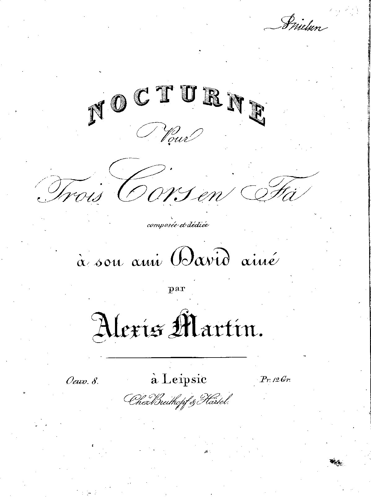 | Alternative. Title | Nocturne pour Trois Cors en Fa, Op.8 |