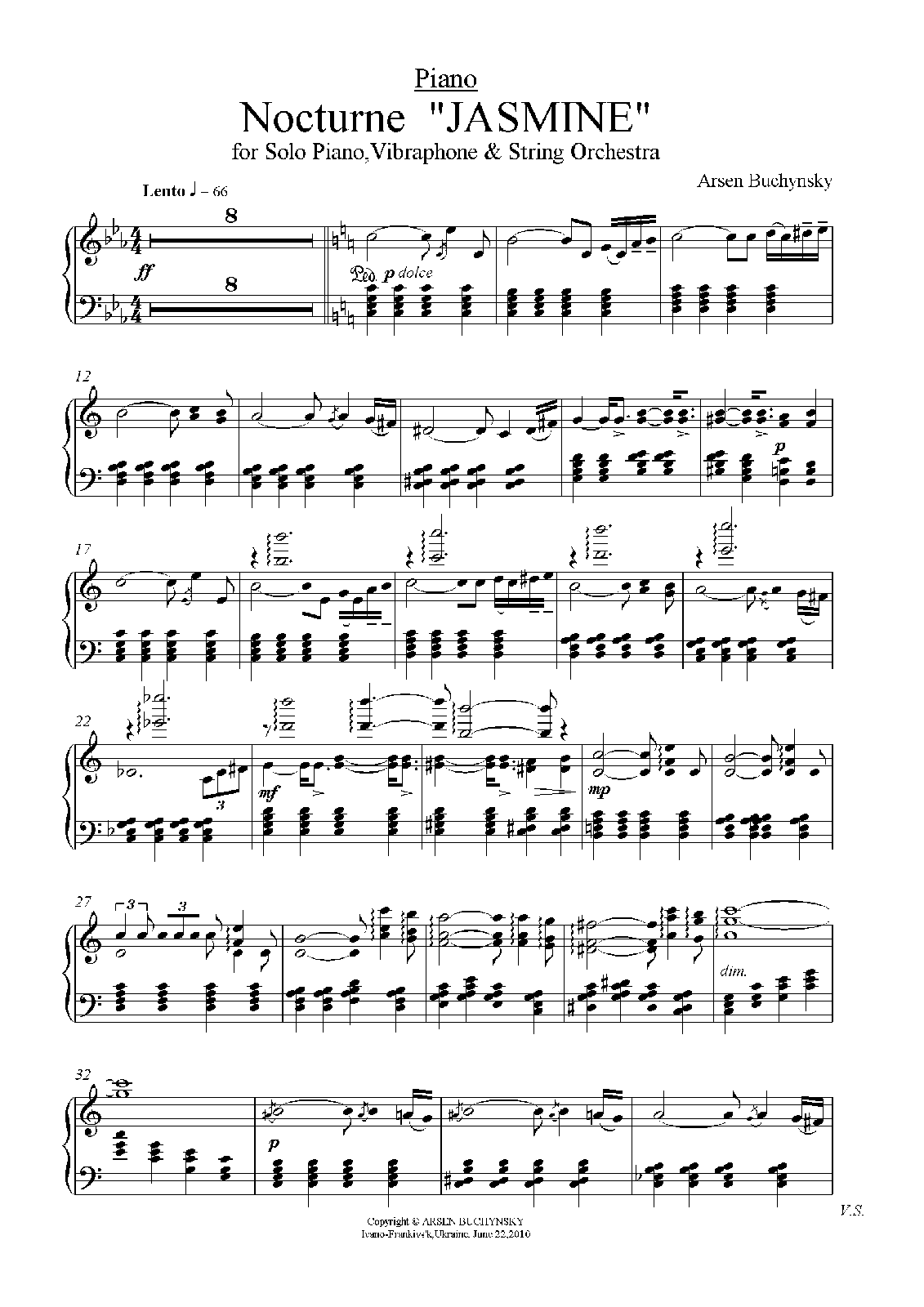 | Instrumentation | Piano, Vibraphone, String orchestra (Violin I, Violin II, Viola, Cello, Double Bass) |