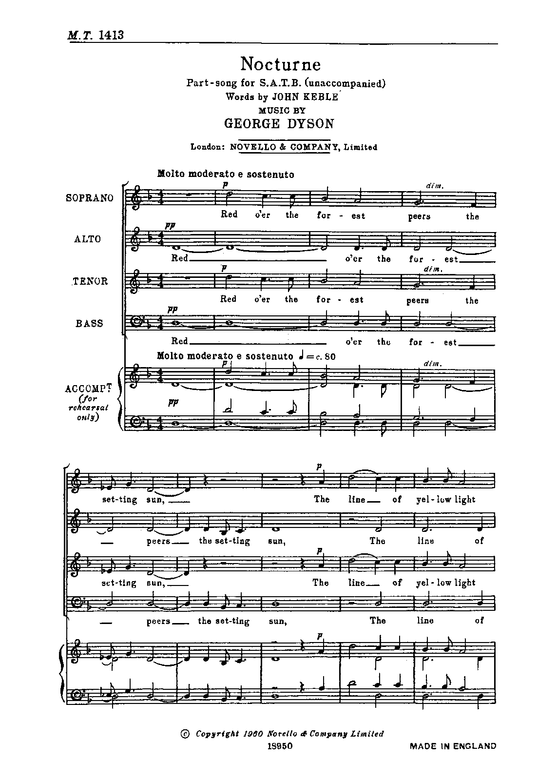 | Genre Categories | Nocturnes; For mixed chorus; Scores featuring mixed chorus; |