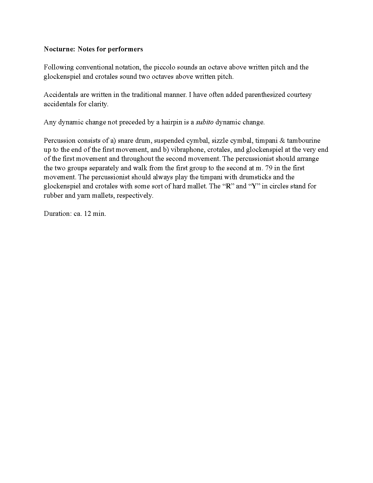 | Genre Categories | Nocturnes; For flute, percussion, violin, cello; Scores featuring the flute; |
