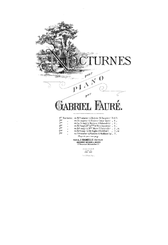 Publisher. Info. Paris: J. Hamelle, n.d.(1884). Plate J. 2280 H.