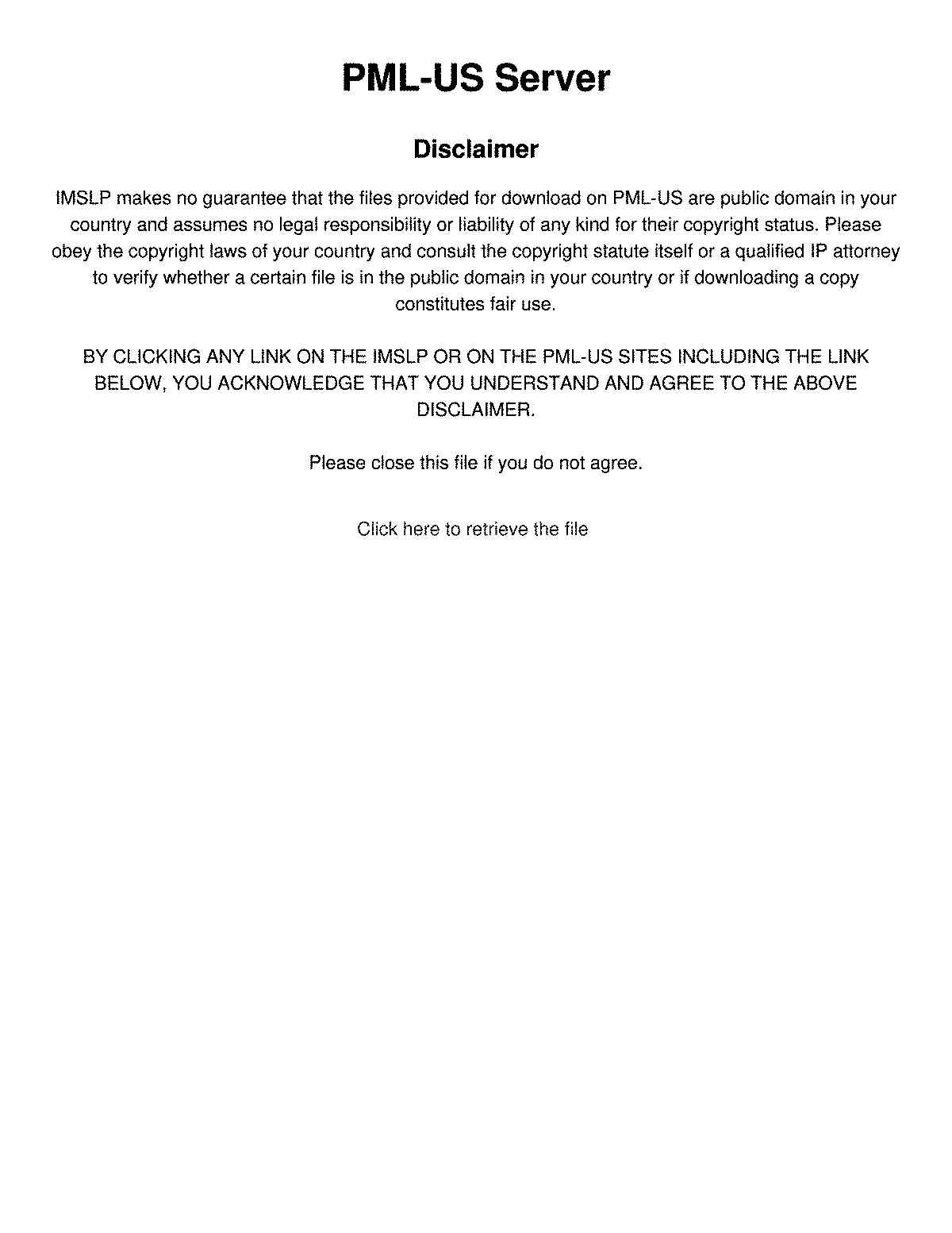 Please obey the copyright laws of your country. IMSLP does not assume any sort of legal responsibility or liability for the consequences of downloading files that are not in the public domain in your country.