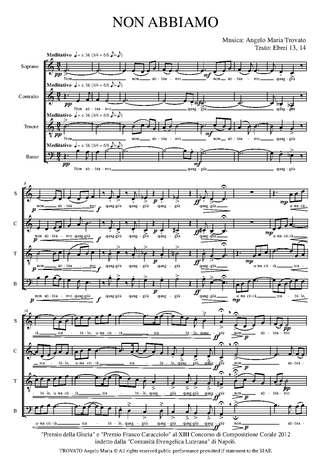 "Jury Prize" and "Franco Caracciolo Prize" at the thirteenth Choral Composition Competition 2012 organized by the "Community Evangelical Lutheran" in Naples.