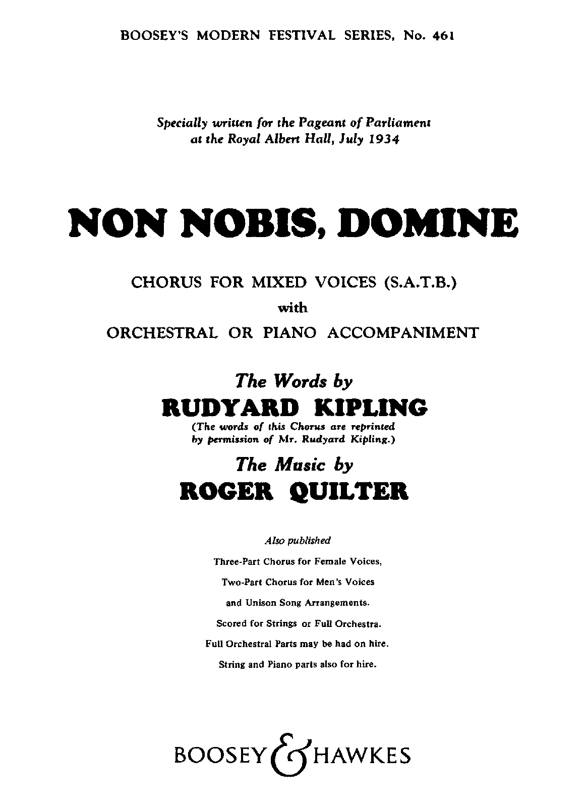 | Work Title | Non Nobis, Domine |
