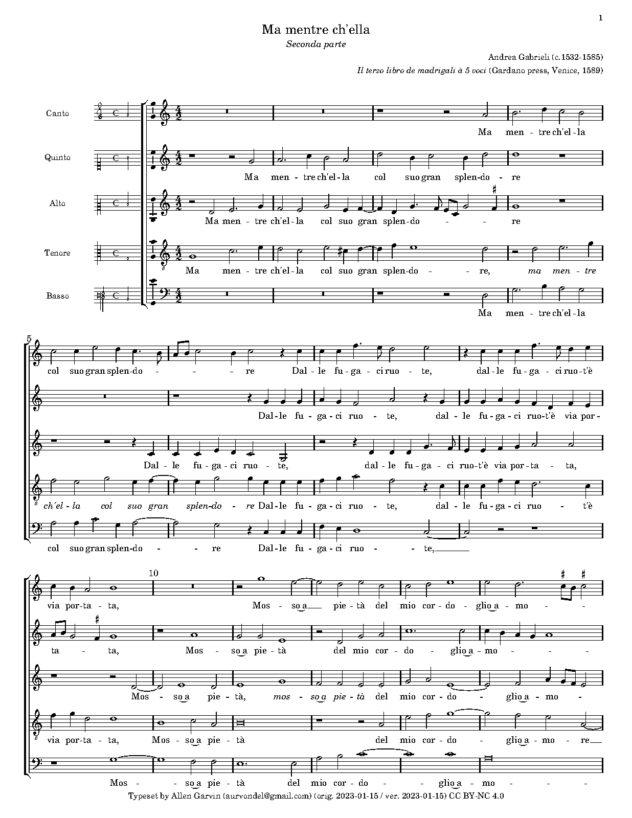 | First Publication | 1589 in Il terzo libro de madrigali à 5 voci (Venice: Gardano press) |