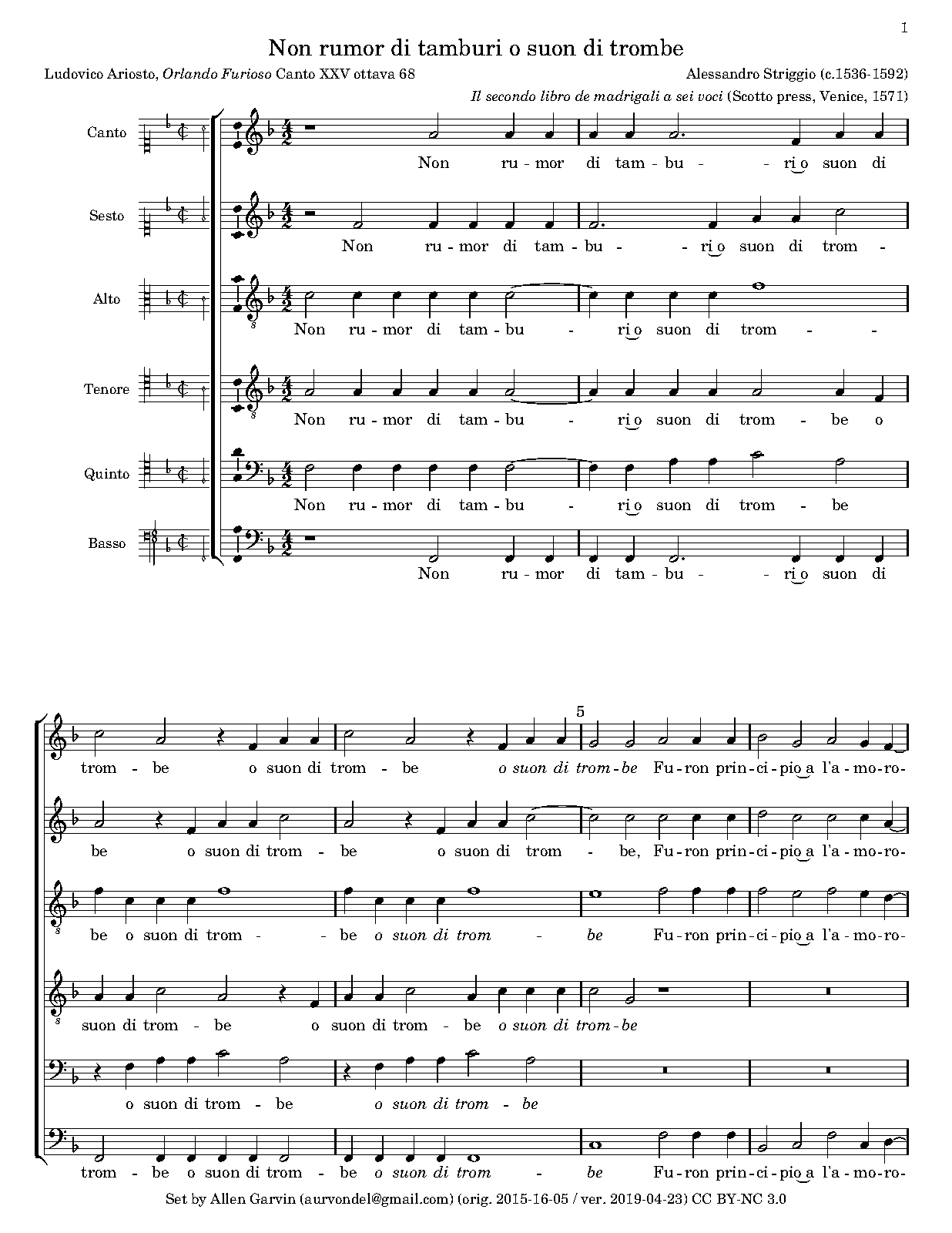 | First Publication | 1582 in Madrigali a 6 voci, Libro 2 (No.15) |
