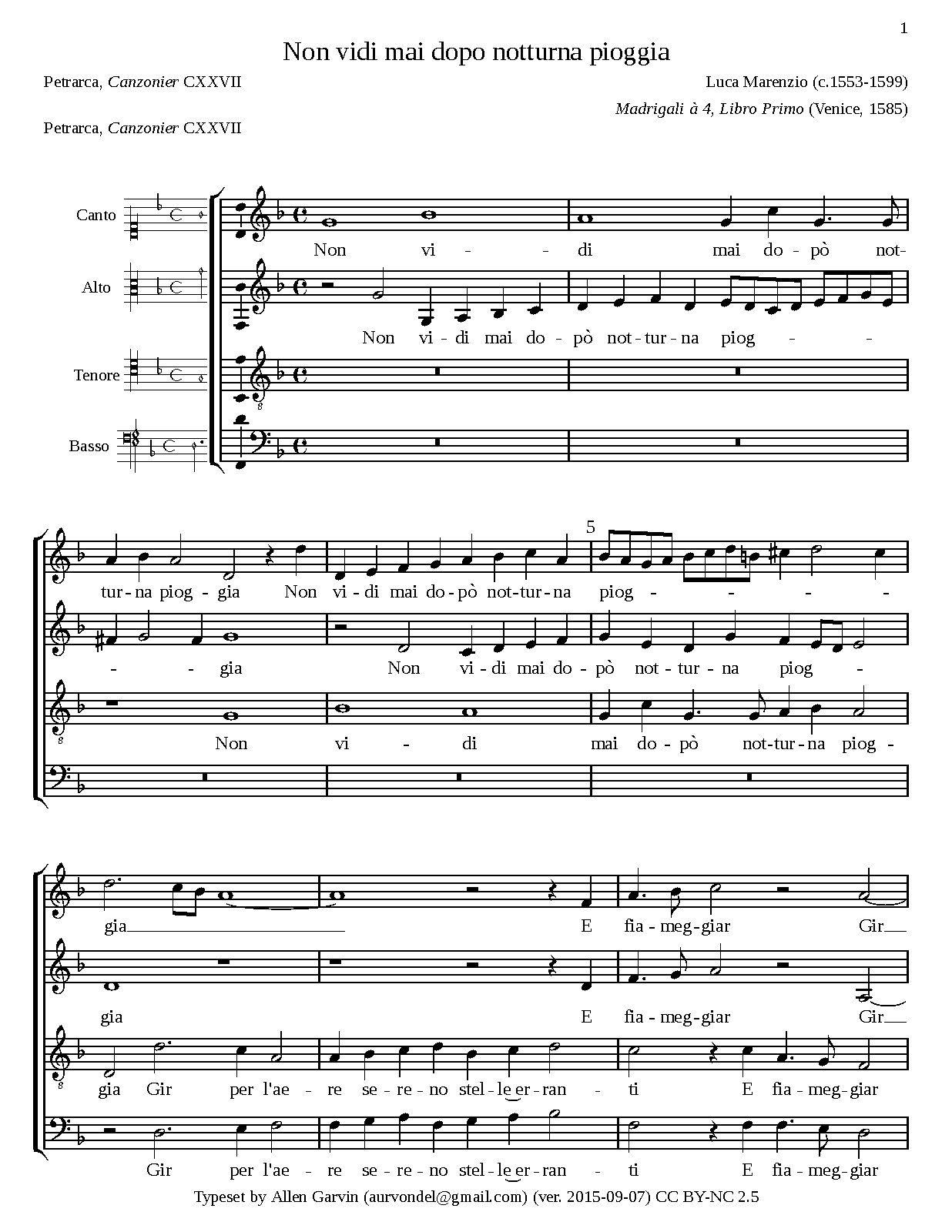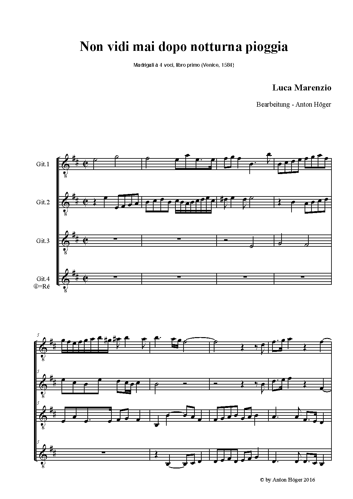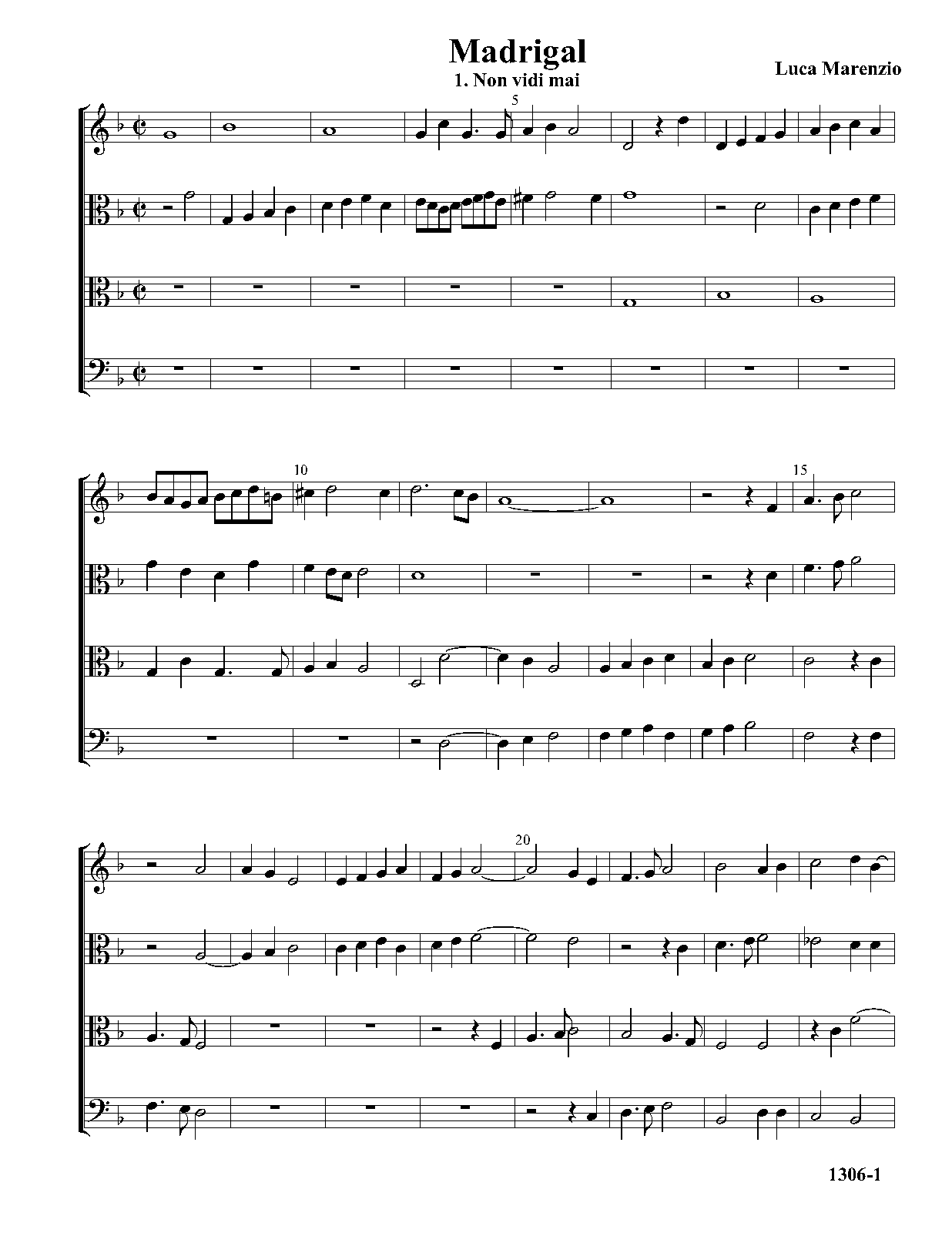 | First Publication | 1585 in Madrigali a quattro voci (No.1) |