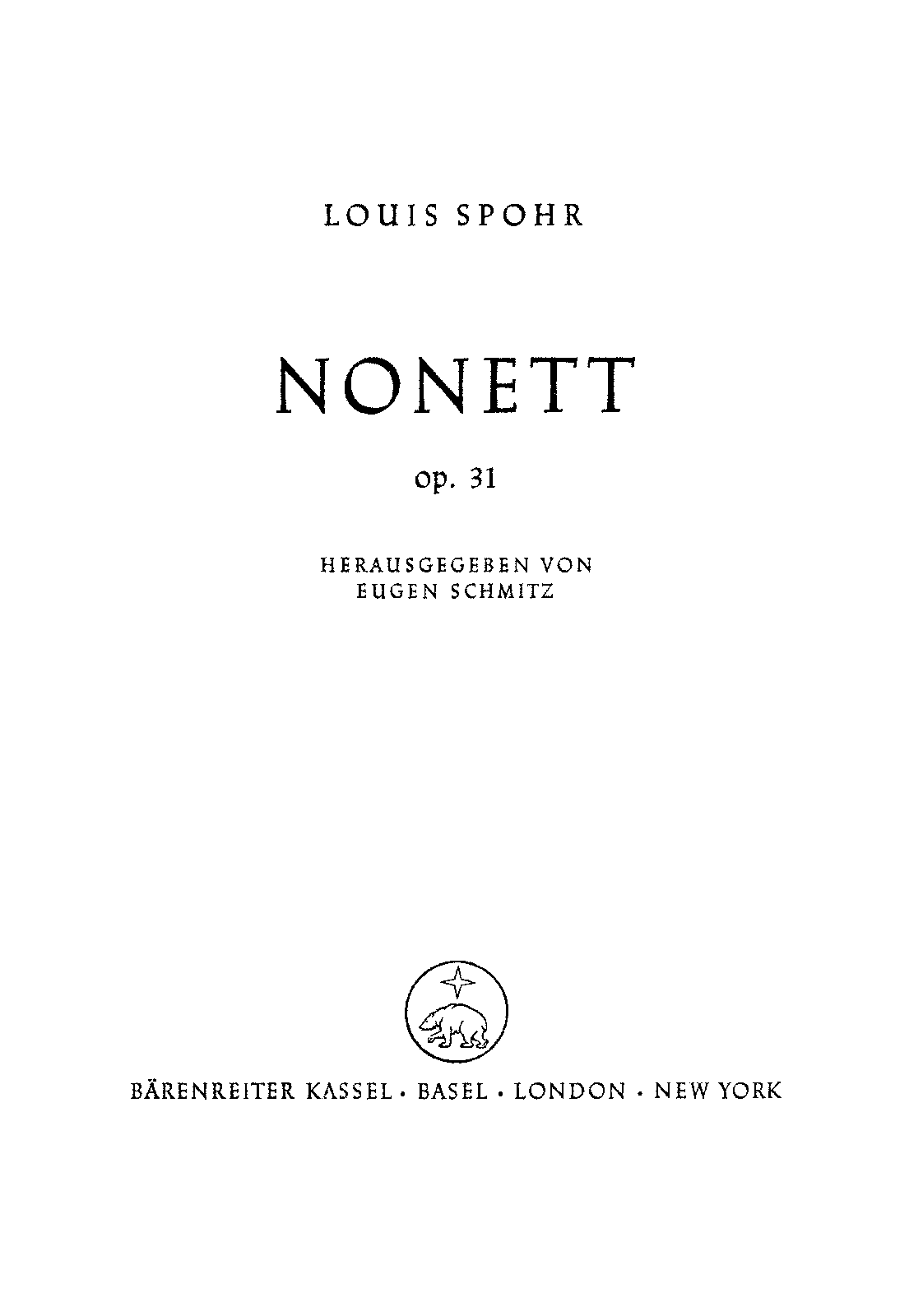 Nonet for flute, oboe, clarinet, horn, bassoon, violin, viola, cello & double bass in F major; Nonet, Op. 31; Nonet in F major; op. 31; Nonett F-Dur; Nonett F-Dur für Violine, Viola, Violoncello, Kontrabass, Flöte, Oboe, Klarinette, Fagott und Horn; Нонет (Шпор)