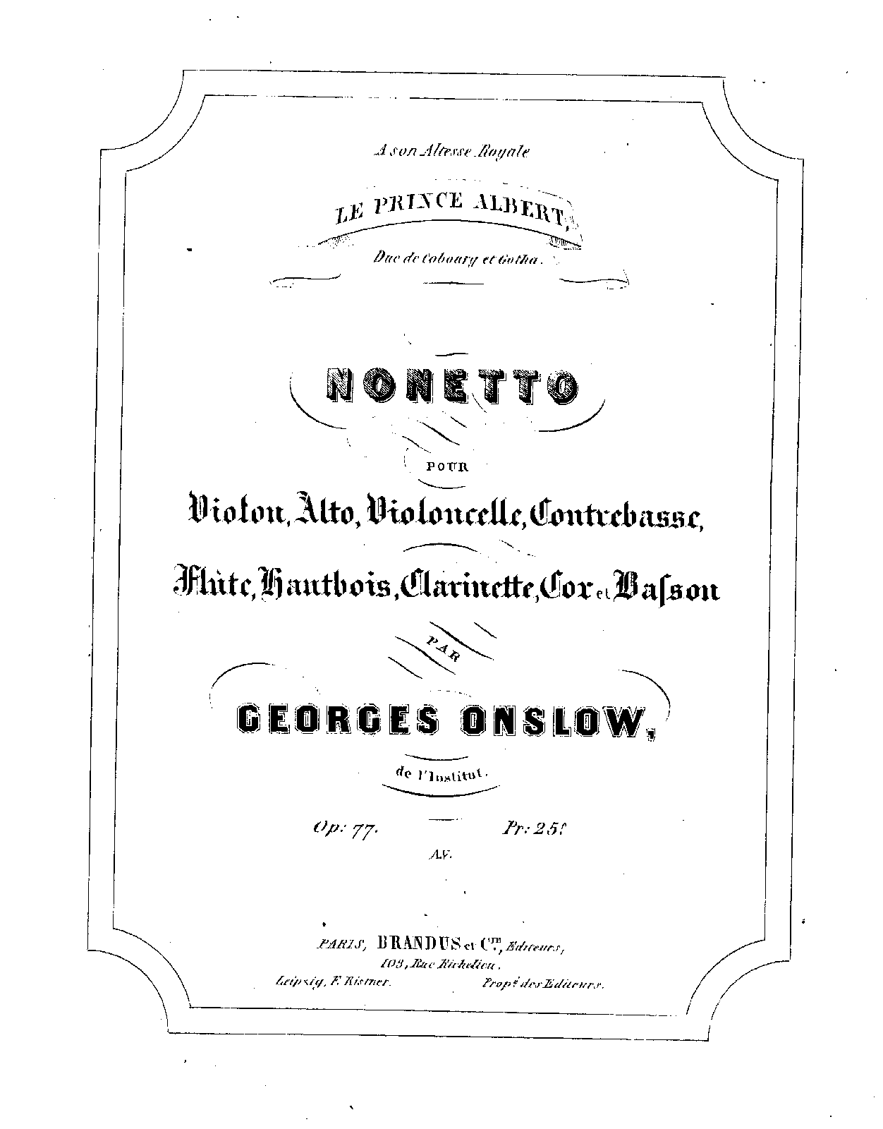 | Genre Categories | Nonets; For flute, oboe, clarinet, bassoon, horn, violin, viola, cello, double bass; Scores featuring the flute; |