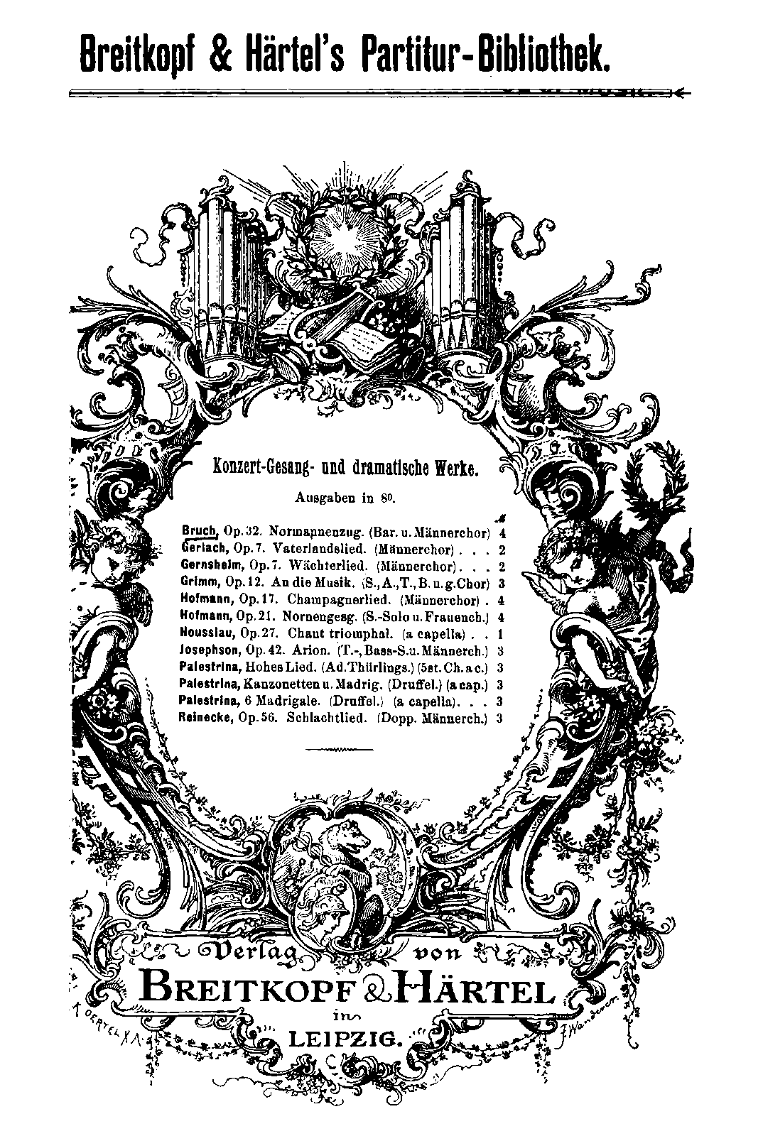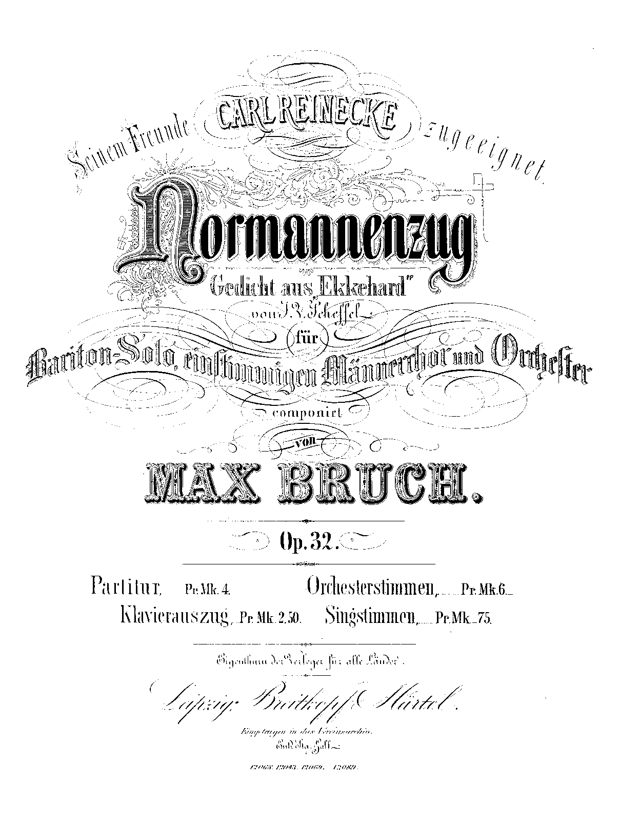 Voices: baritone + male chorus (TB) Orchestra: flutes, oboes, clarinets (A), bassoons + 4 horns (F), trumpets (E♭), 3 trombones + timpani + strings