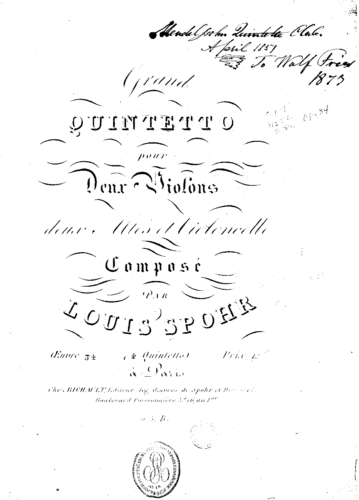 | First Publication. | 1816 - Leipzig: C.F. Peters (score and parts) |