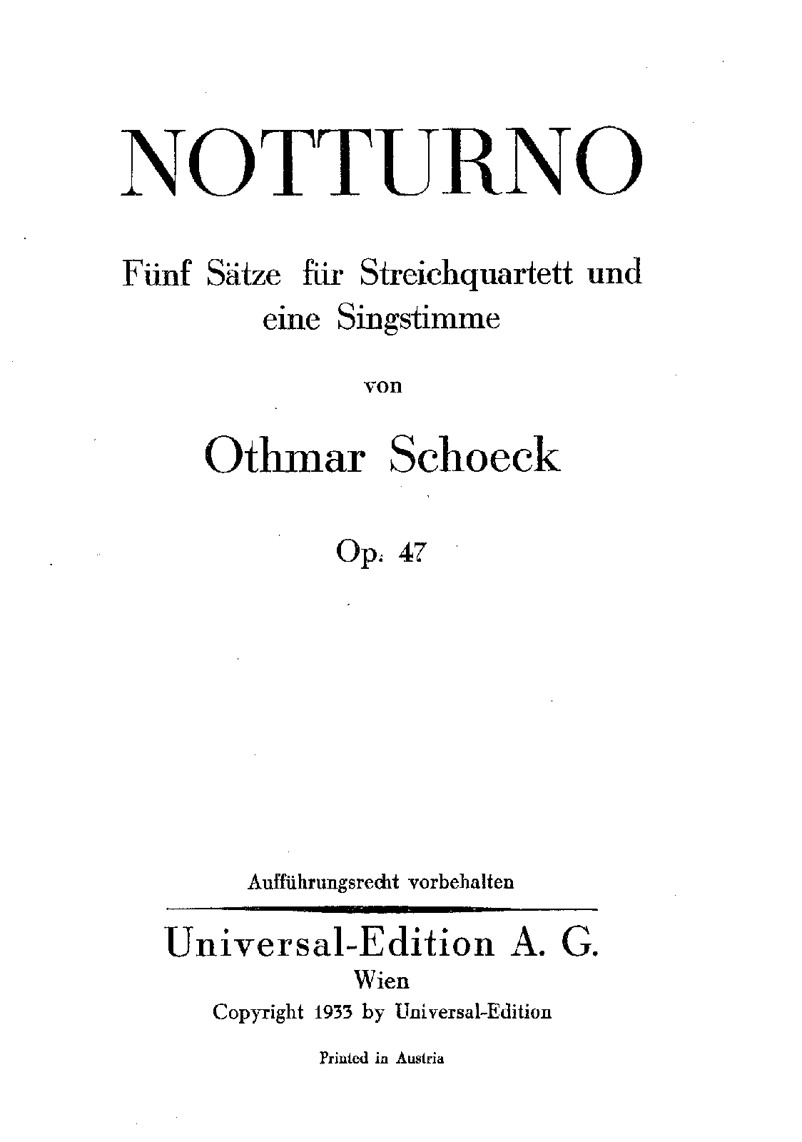 | Genre Categories | Nocturnes; For voice, 2 violins, viola, cello; For voices with solo instruments; |