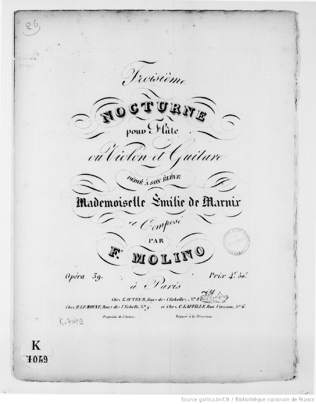 | Alternative. Title | Troisième Nocturne pour flûte ou violon et guitare |
