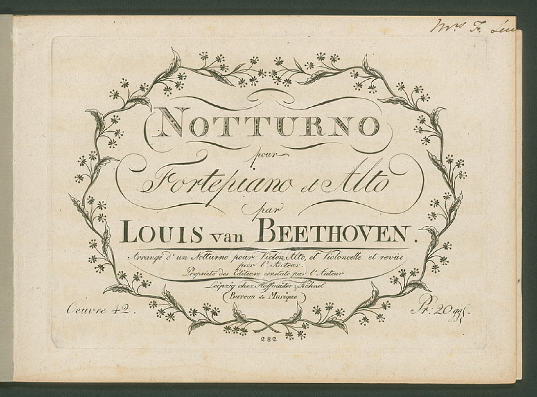 | Extra Information | This is an arrangement of the Op.8 serenade. It was announced in December 1803, published in 1804 (according to Thayer). The composer disowns having made the arrangement in a letter to Hoffmeister of 9-22-1803, though he writes the arranger's work was much improved by him in places. |