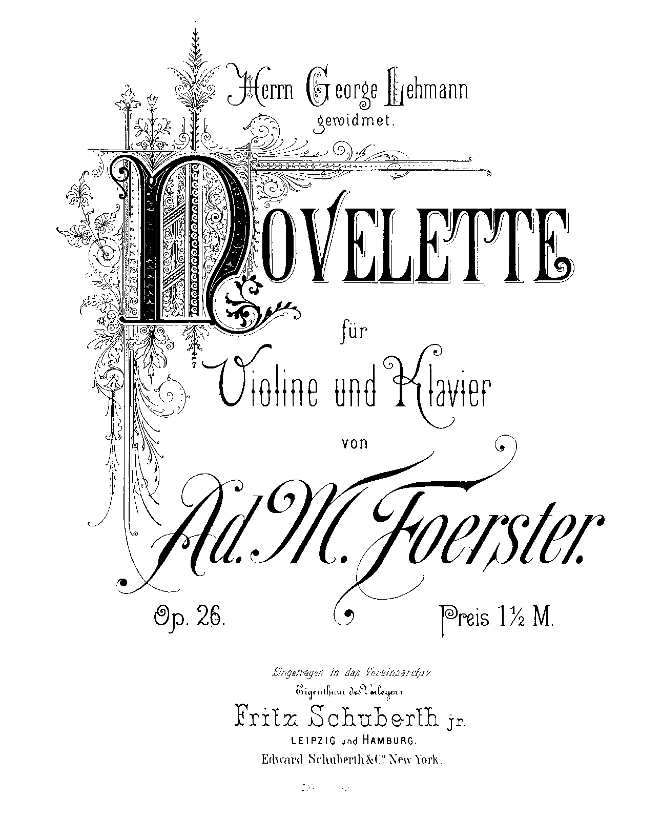 Leipzig: Fritz Schuberth, Jr., n.d.[1890]. Plate G. 29 T. Co-issue: New York: Edward Schuberth & Co., 1890.