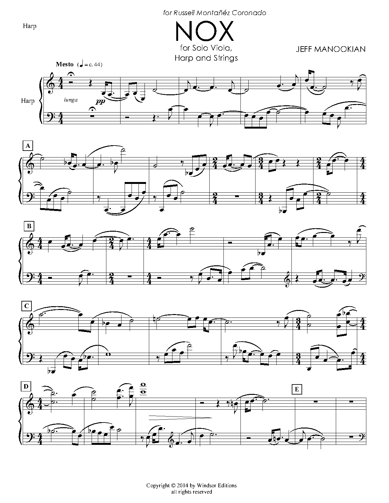 | Alternative. Title | Nox for Solo Viola, Harp and Strings |