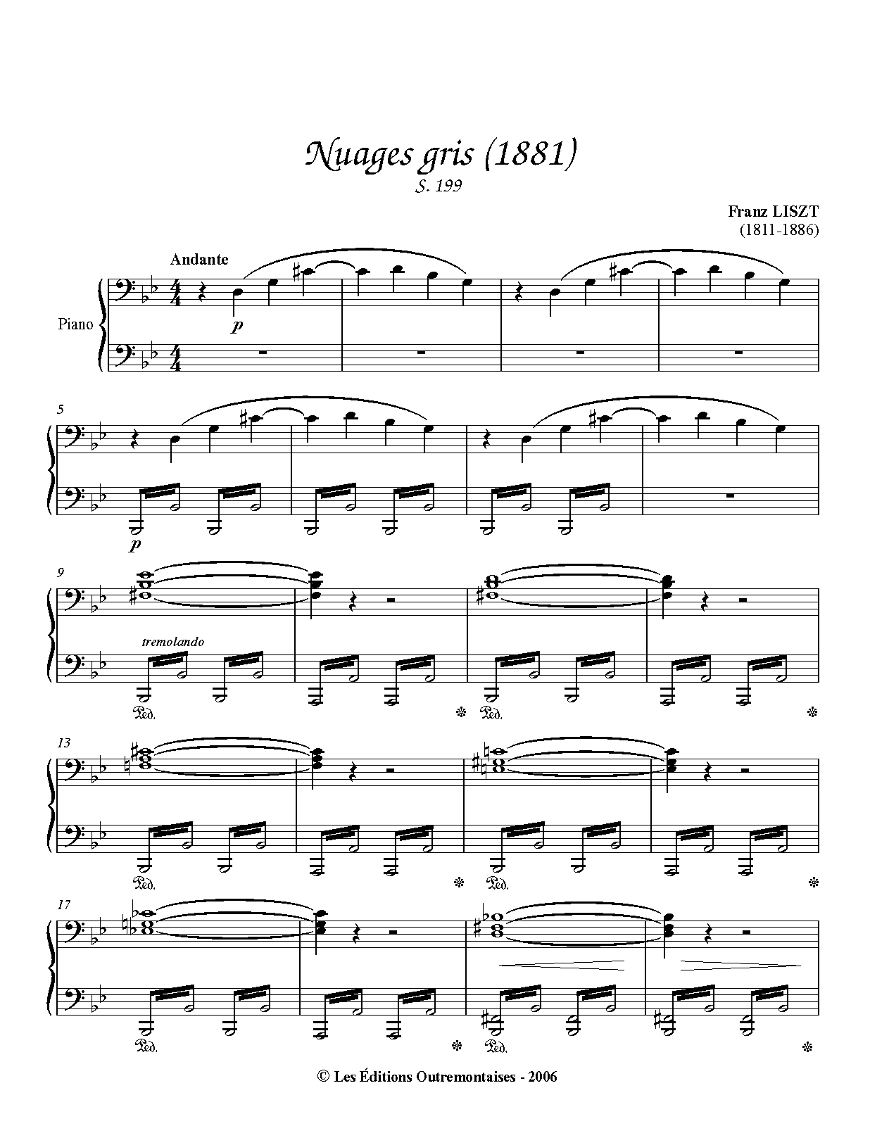 Cette pièce est connue de nos jours sous le titre de «Nuages gris».