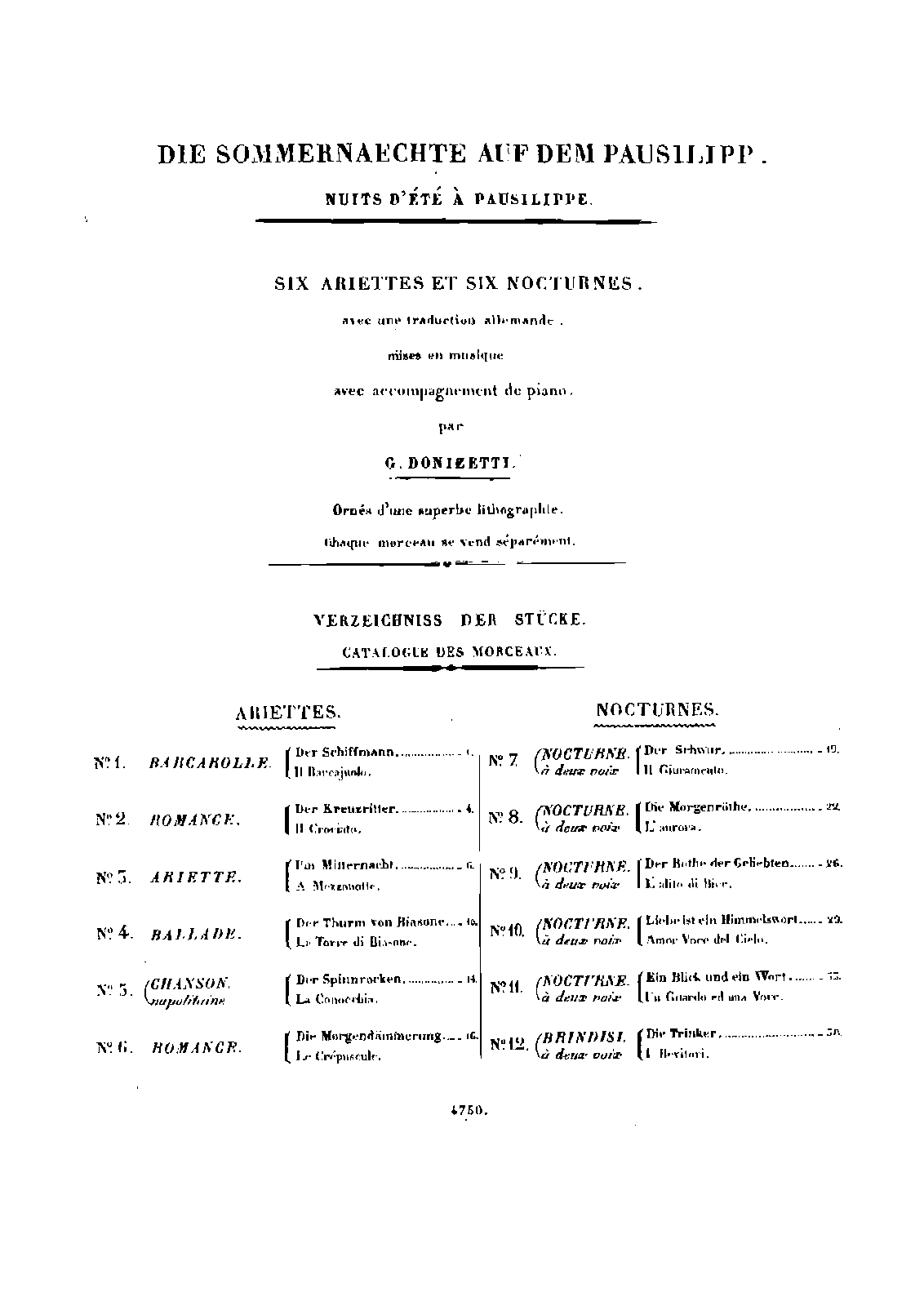 - Francesco Puoti, Italian text; Louis Crevel de Charlemagne (1806–1882), French text