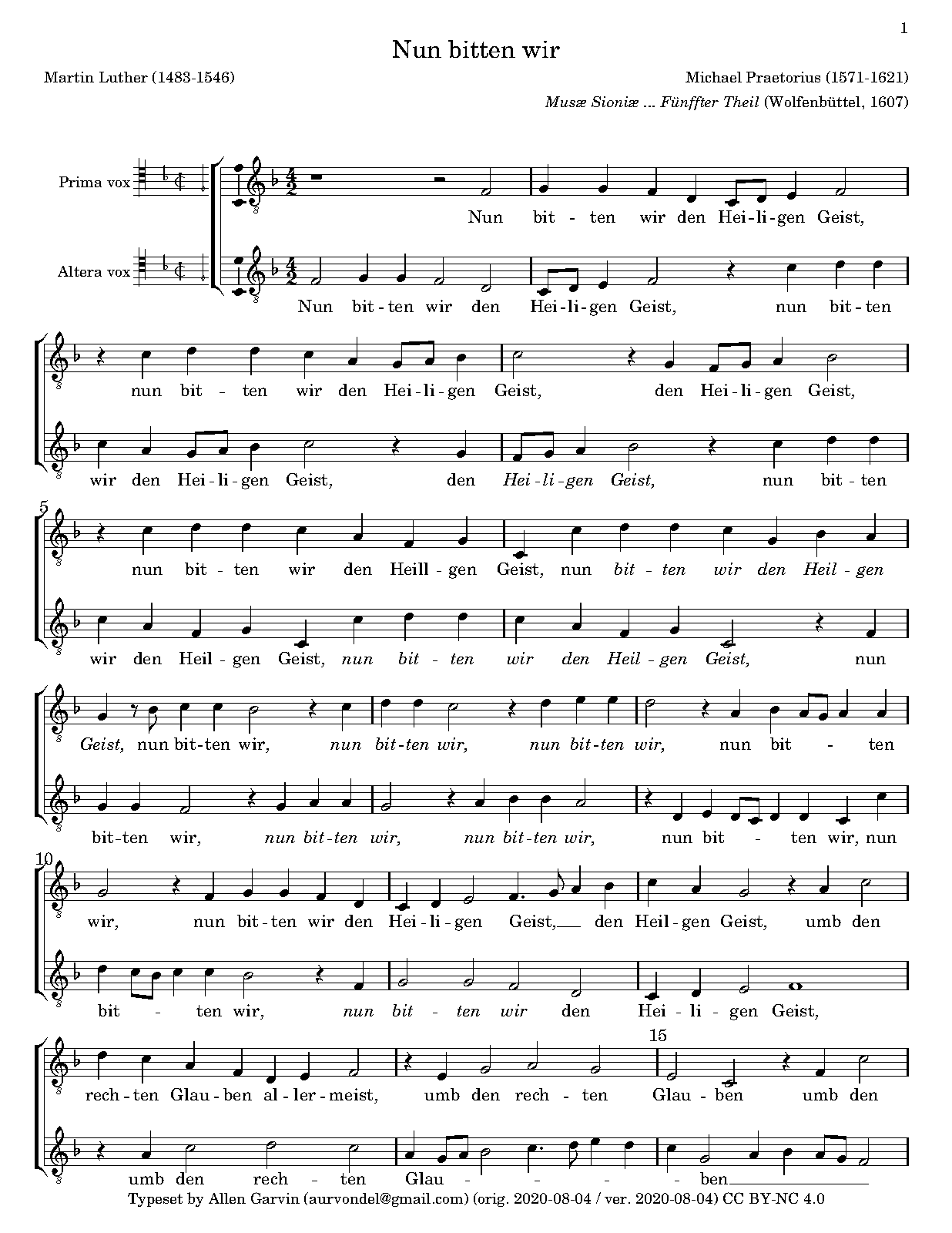 | Work Title | Nun bitten wir den Heiligen Geist II à 2 |