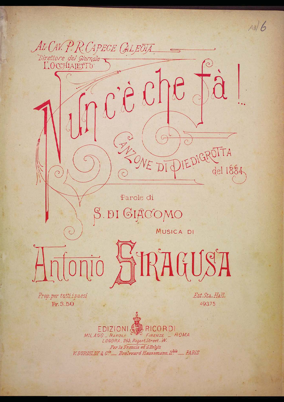 | First Performance. | 1884-09-07 – Naples, Festa di Piedigrotta |
