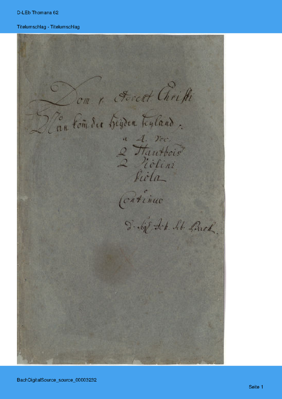 Misc. Notes Leipzig Bach-Archiv (D-LEb): Thomana 62