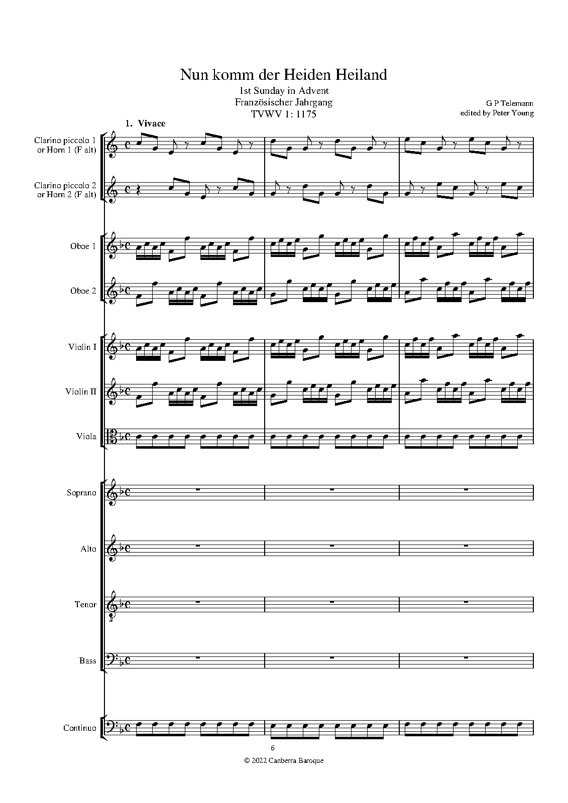 2 oboes, calchedon, 2 piccolo trumpets (or 2 horns), strings, continuo