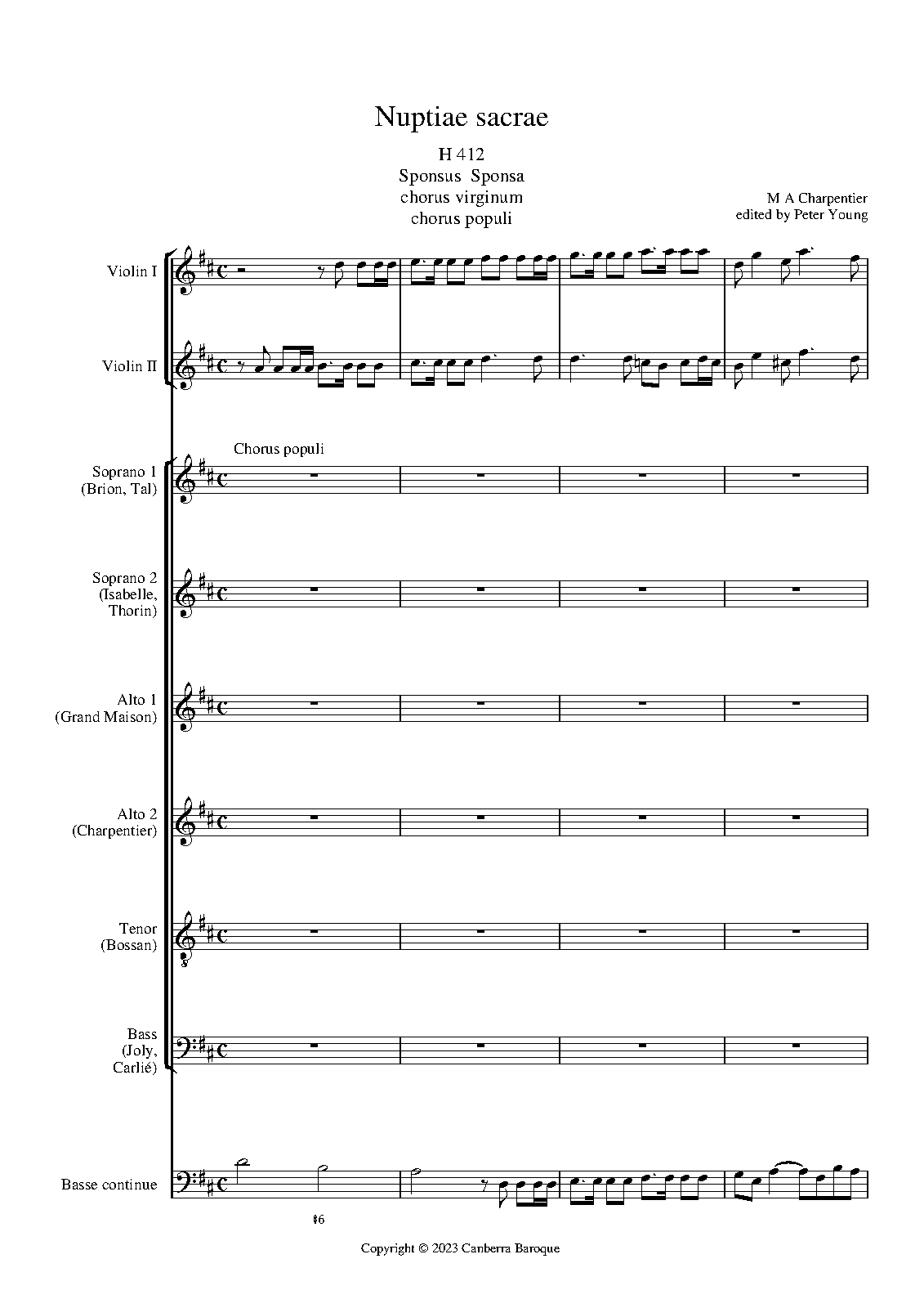| Instrumentation | 2 sopranos, 2 altos, tenor, bass; mixed chorus (SSAATB), 2 violins, continuo |