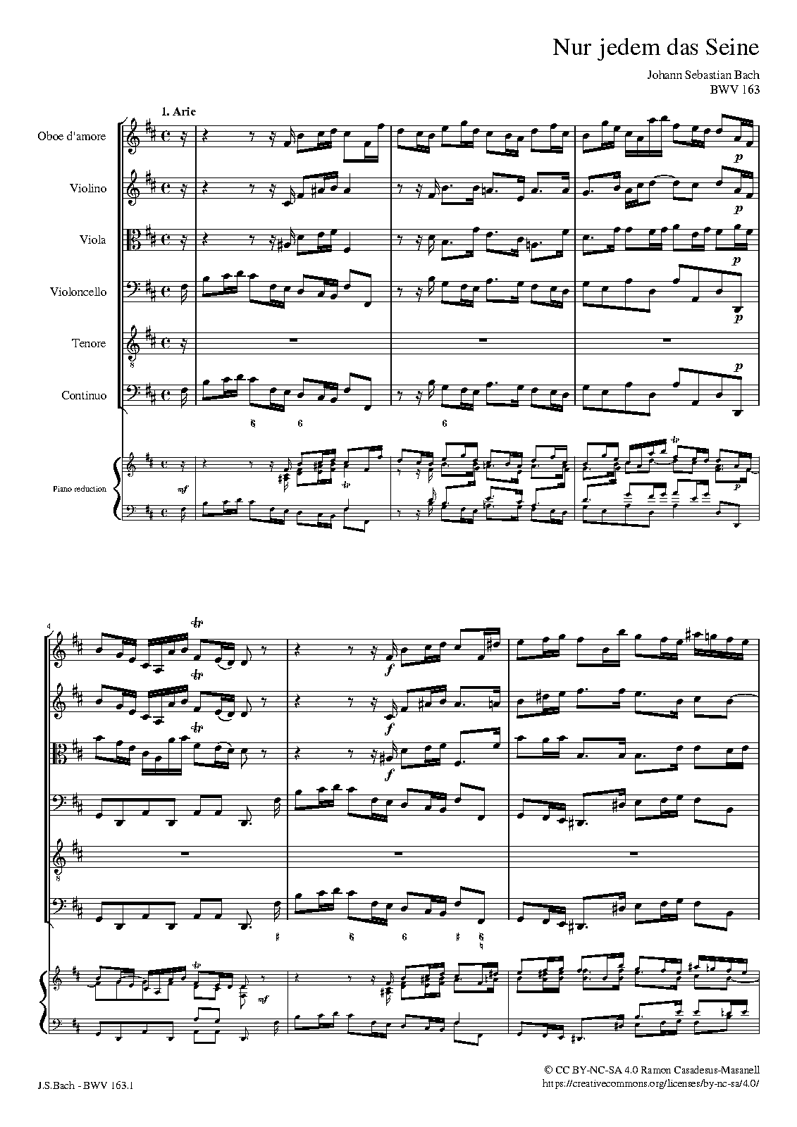 6 more: 2. Recitative: 'Du bist, mein Gott, der Geber aller Gaben' • 3. Aria: 'Lass mein Herz die Münze sein' • 4. Duet Arioso: 'Ich wollte dir' • 5. Duet Aria: 'Nimm mich mir und gib mich dir' • 6. Chorale: 'Führ auch mein Herz und Sinn' • Engraving files (MuseScore)