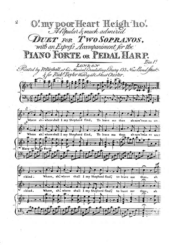 Oh! My Poor Heart; Where, ah Where Shall I My Shepherd Find? A Popular and much admired Duet for Two Sopranos with an Express Accompaniment for the Piano Forte or the Pedal Harp