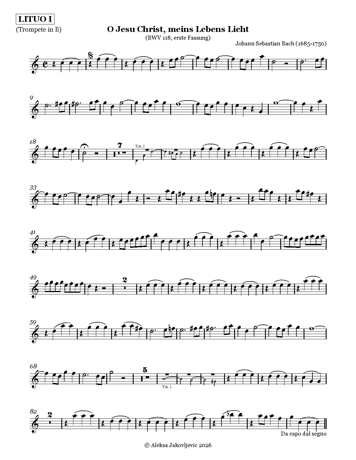 O Jesu Christ, mein's Lebens Licht, BWV 118 (Bach, Johann Sebastian)