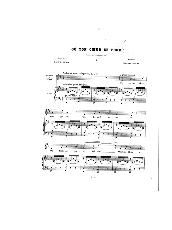 | First Publication. | 1874 in Vingt-cinq Morceaux de chant à une voix avec accompagnement de piano... deuxième recueil |